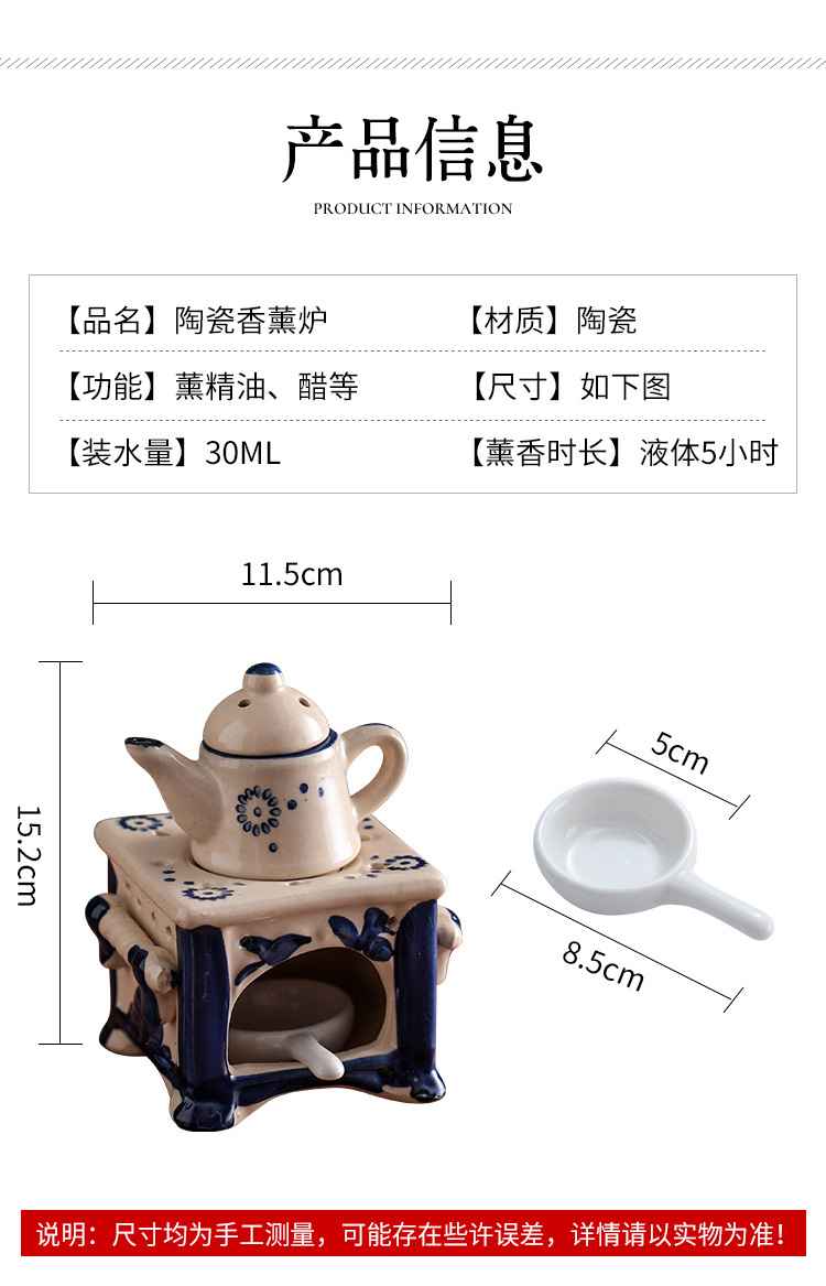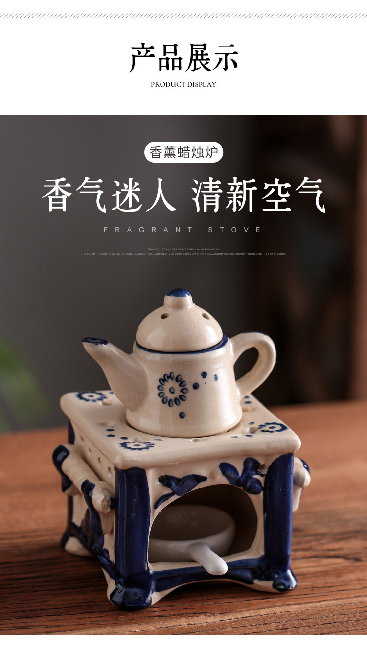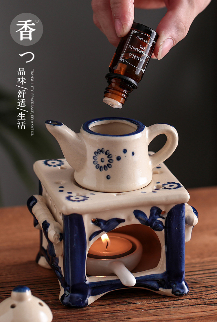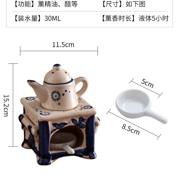 蓝彩方壶陶瓷香薰灯 蜡烛炉精油灯 出口外贸亚马逊速卖通专供