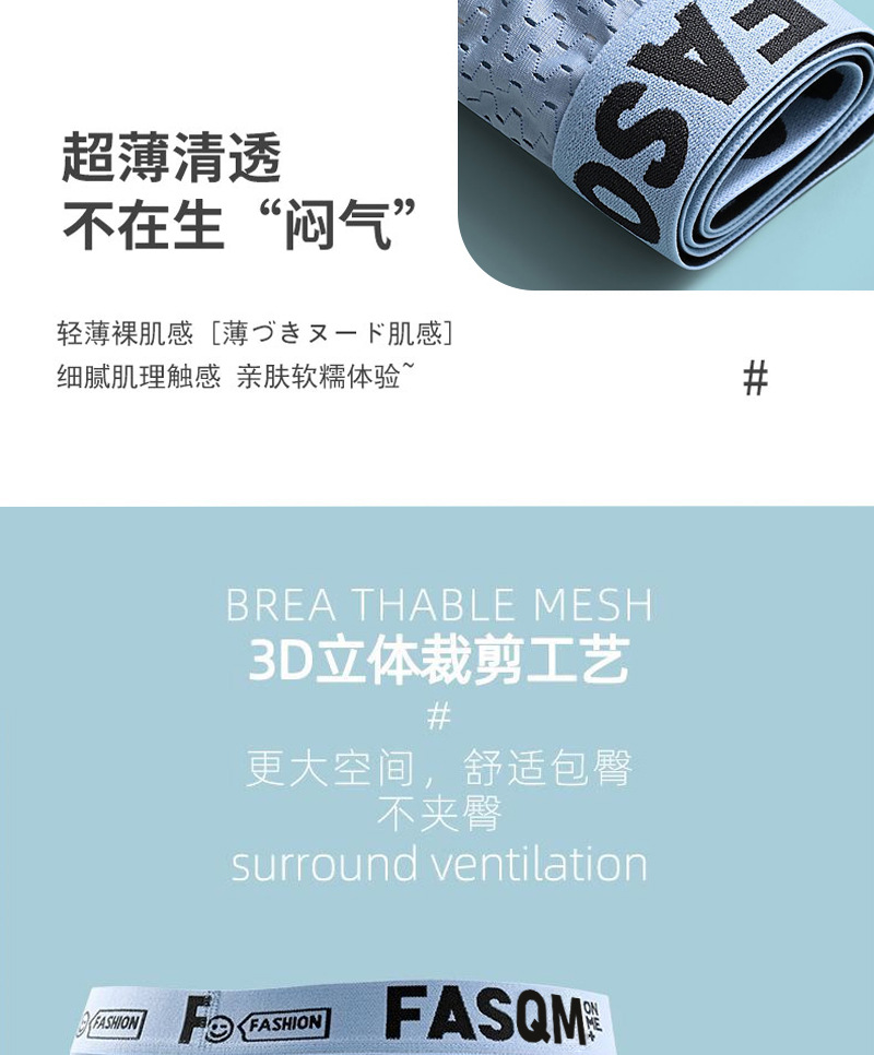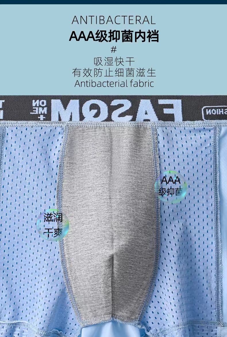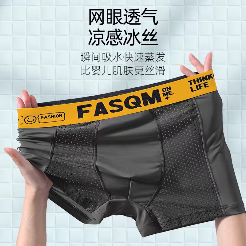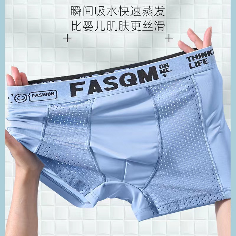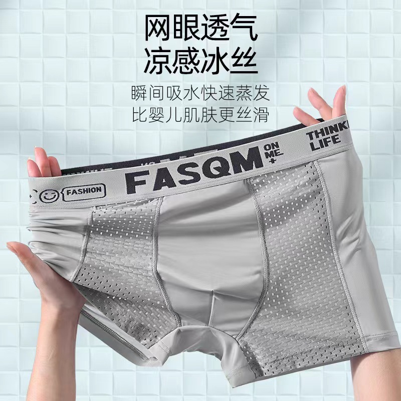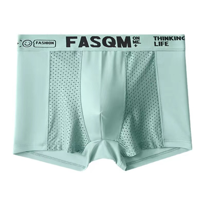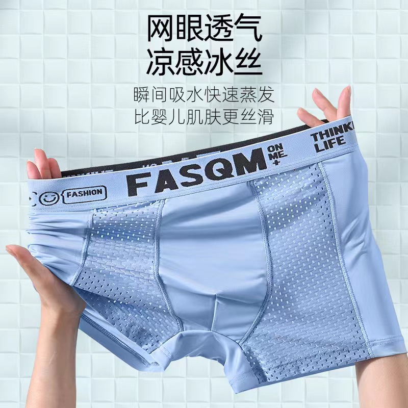 男士内裤夏季薄款透气网孔冰丝四角裤运动字母平角短裤杈一件代发