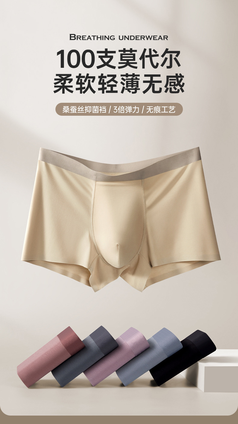 高端男士内裤100支莫代尔男式平角裤7A蚕丝内裆四角裤男短裤薄款