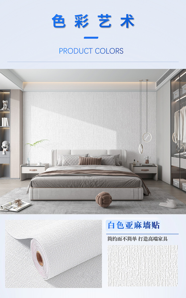 墙纸自粘批发卧室防水防潮宿舍翻新贴纯色白色直播背景墙贴纸壁纸