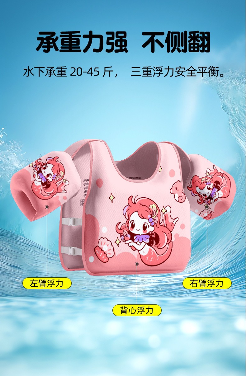 筱侣 免充气儿童浮力背心男女童浮袖手臂圈宝宝初学者浮力衣游泳