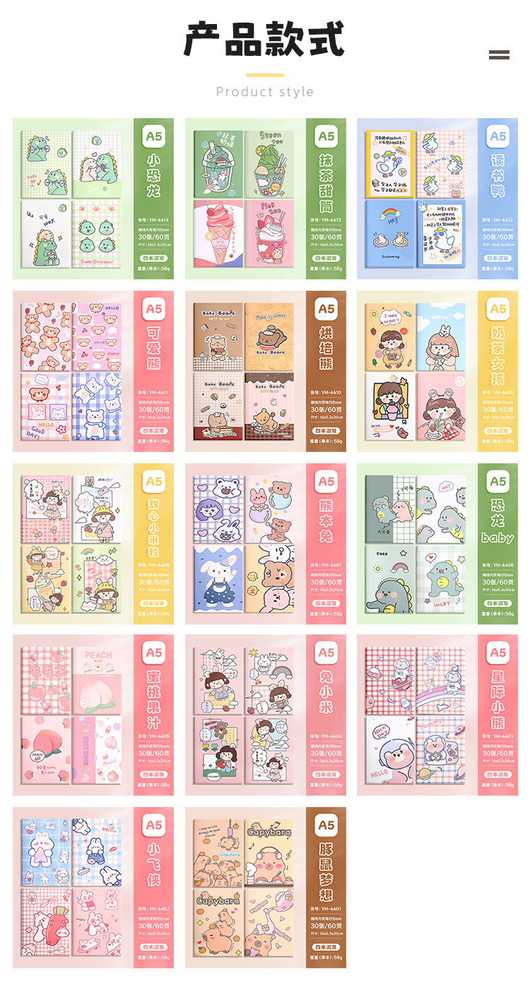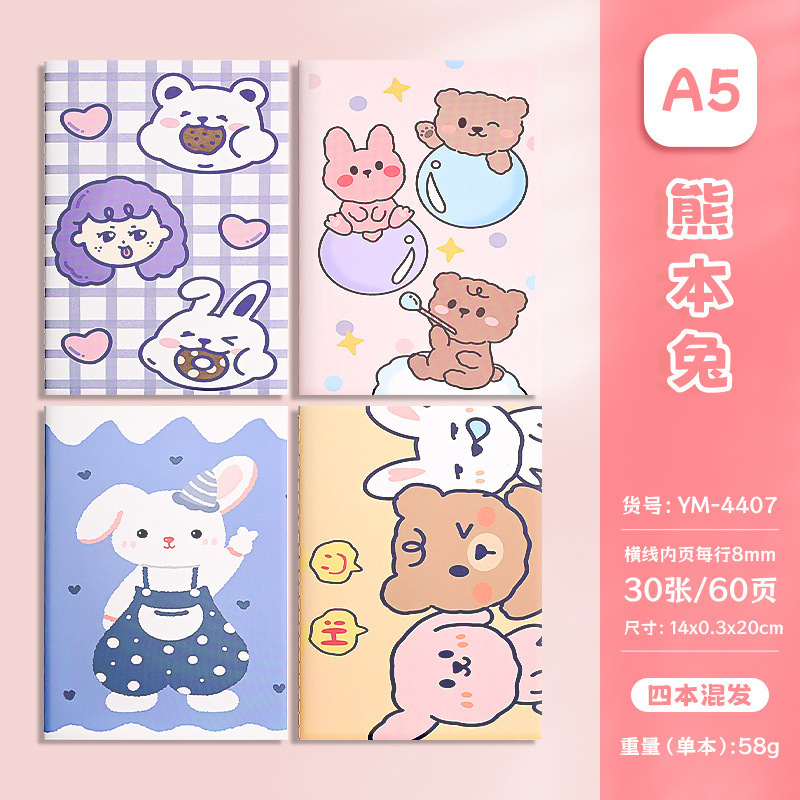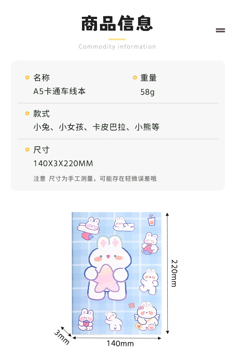 卡通A5车线本30张小学生奖品高颜值记事本文具用品横线笔记本批发