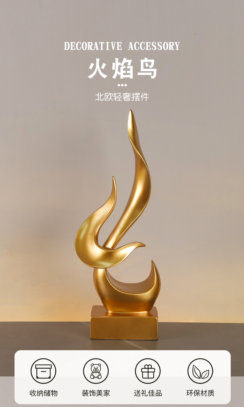 厂家创意摆件火焰鸟金色现代家居酒柜办公室装饰树脂工艺品批发