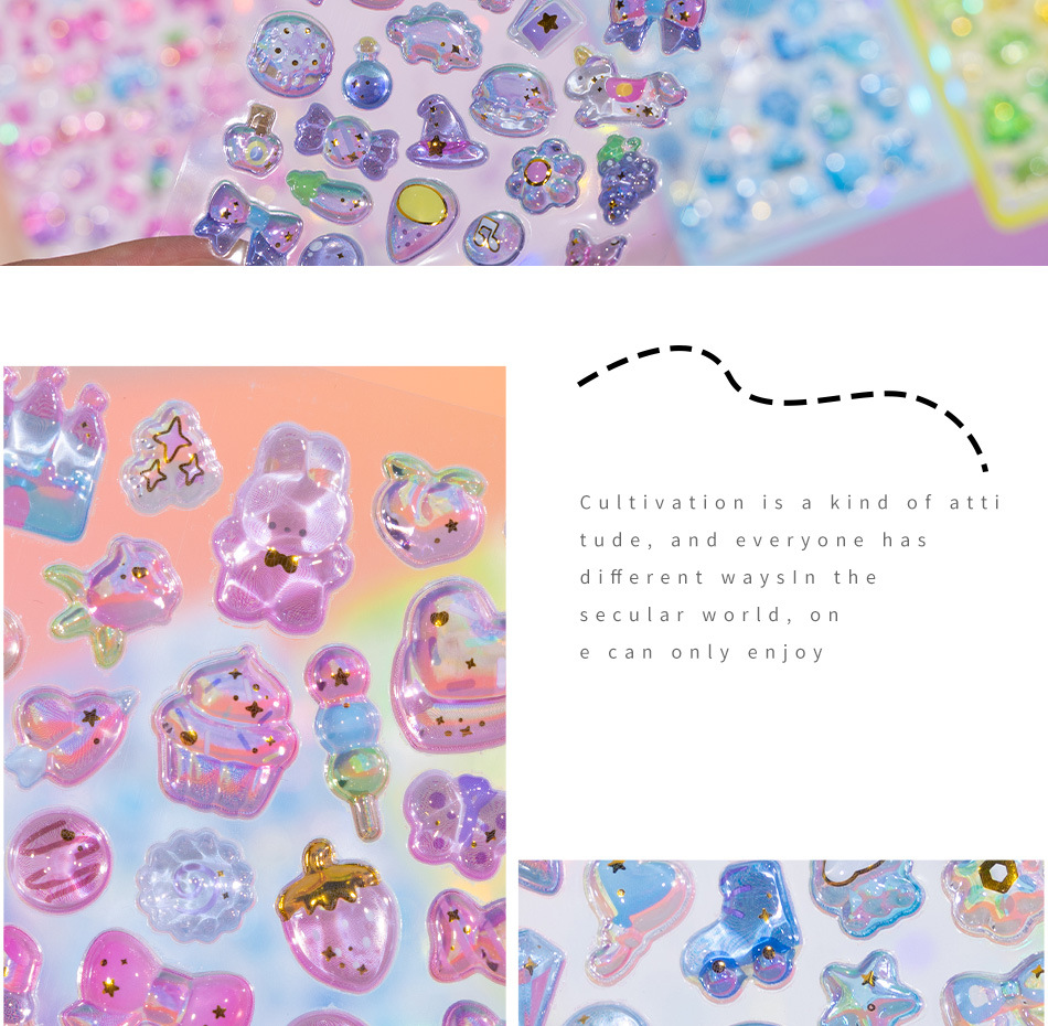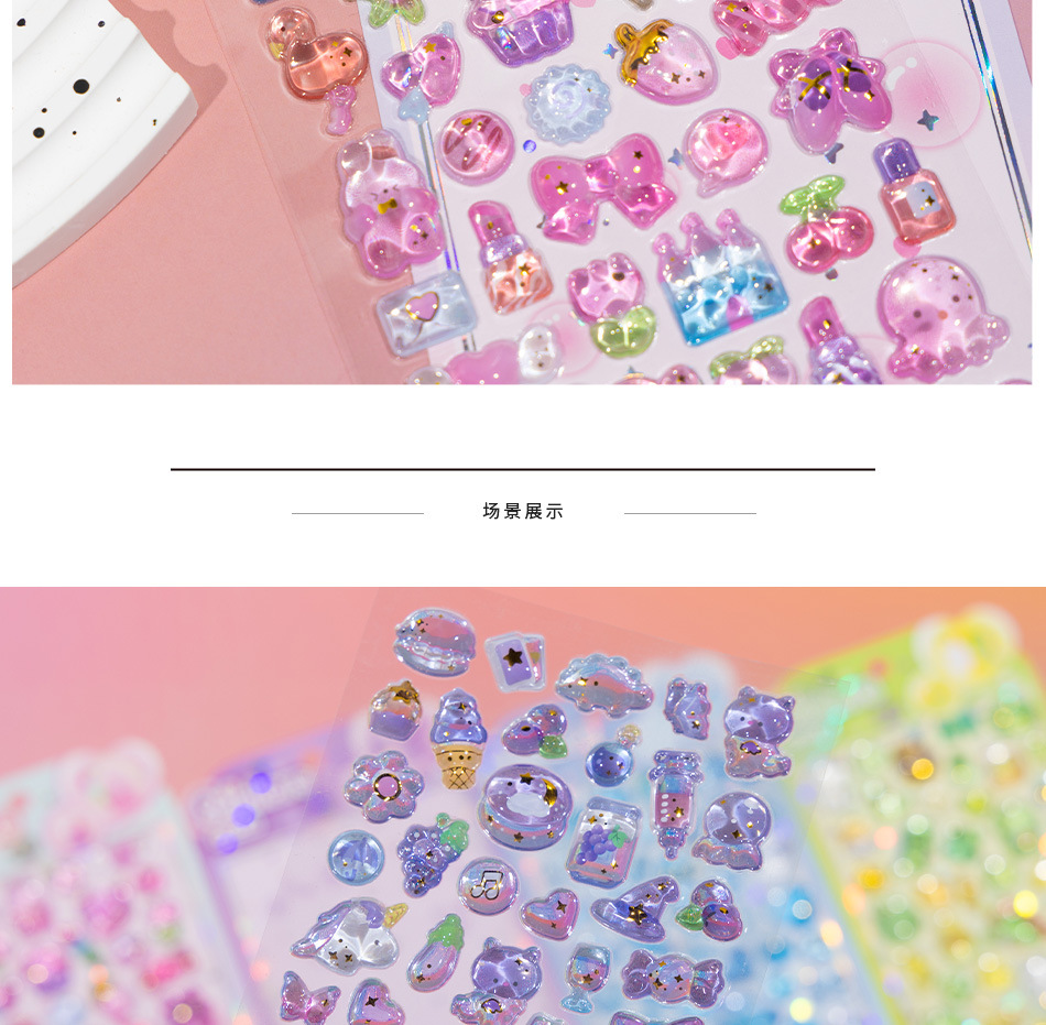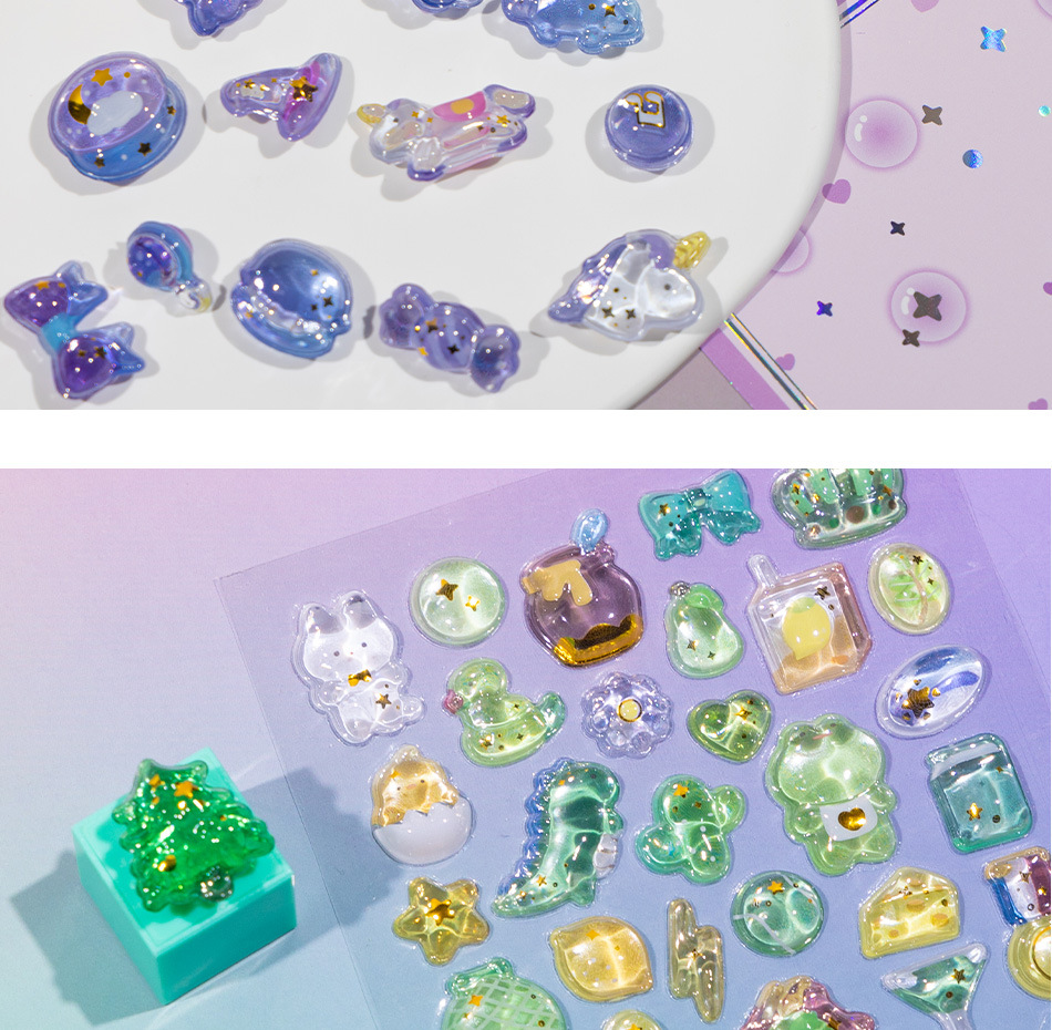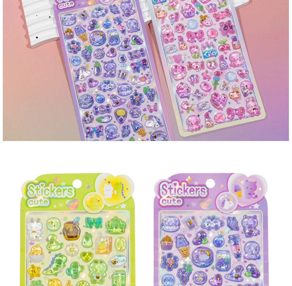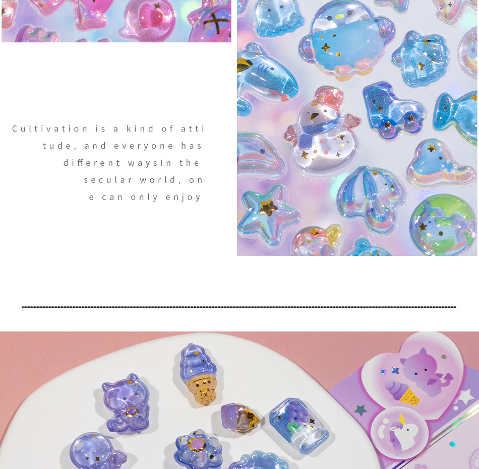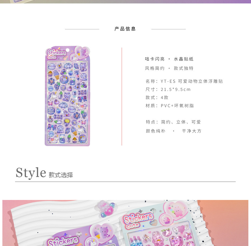 3D日系浮雕水晶立体贴纸猫咪小恐龙兔兔企鹅可爱动物卡通装饰贴画
