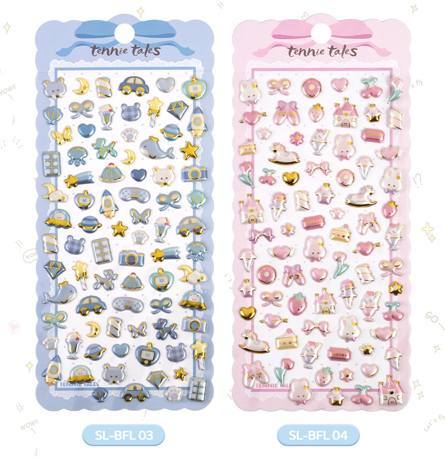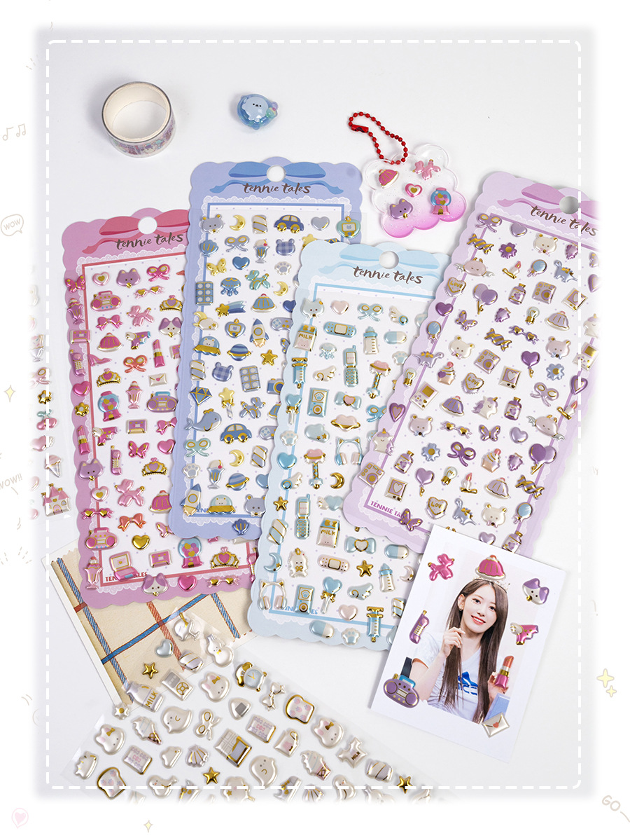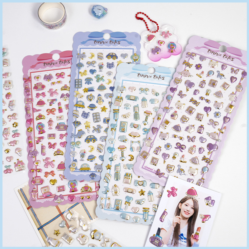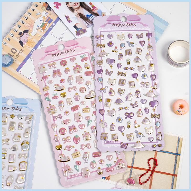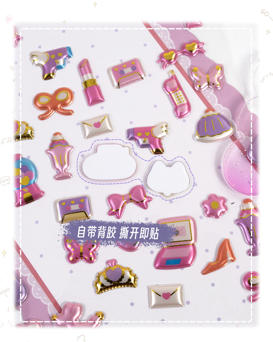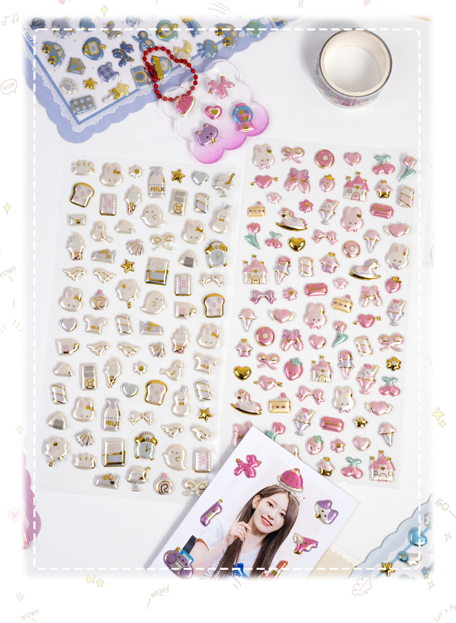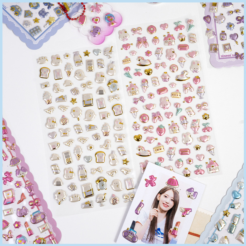 3d珠光金箔炫彩贴日系杂货图案儿童立体贴纸女生奖励手工装饰素材