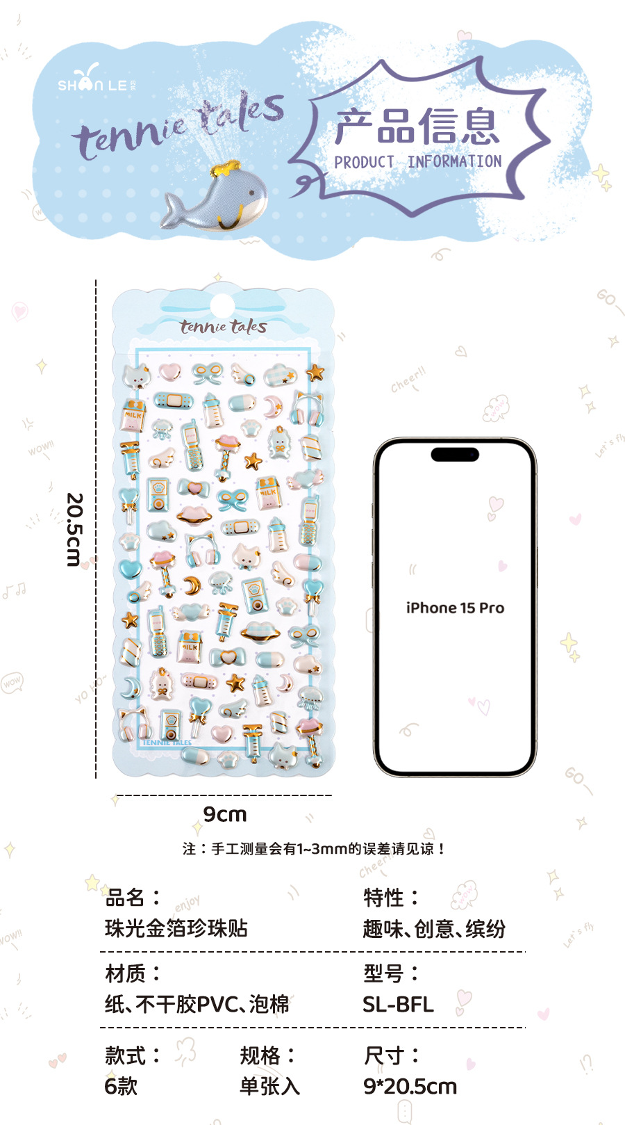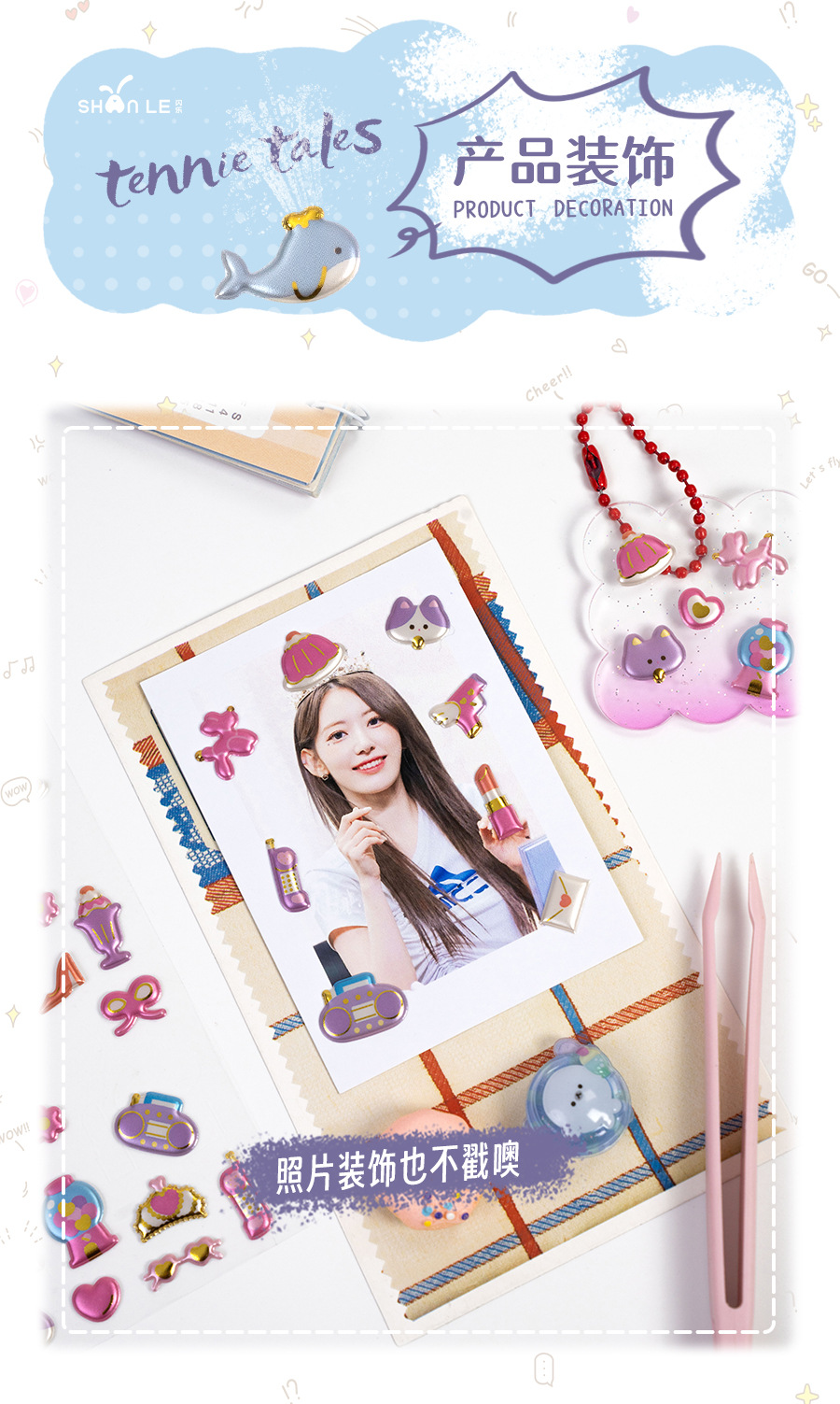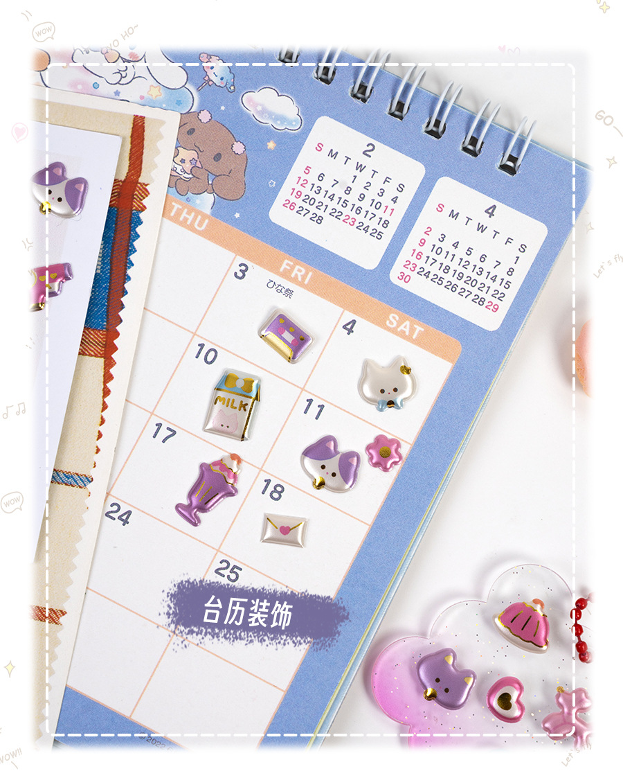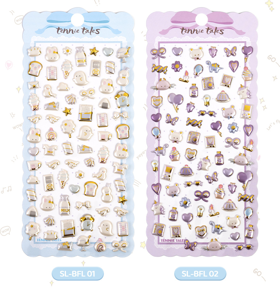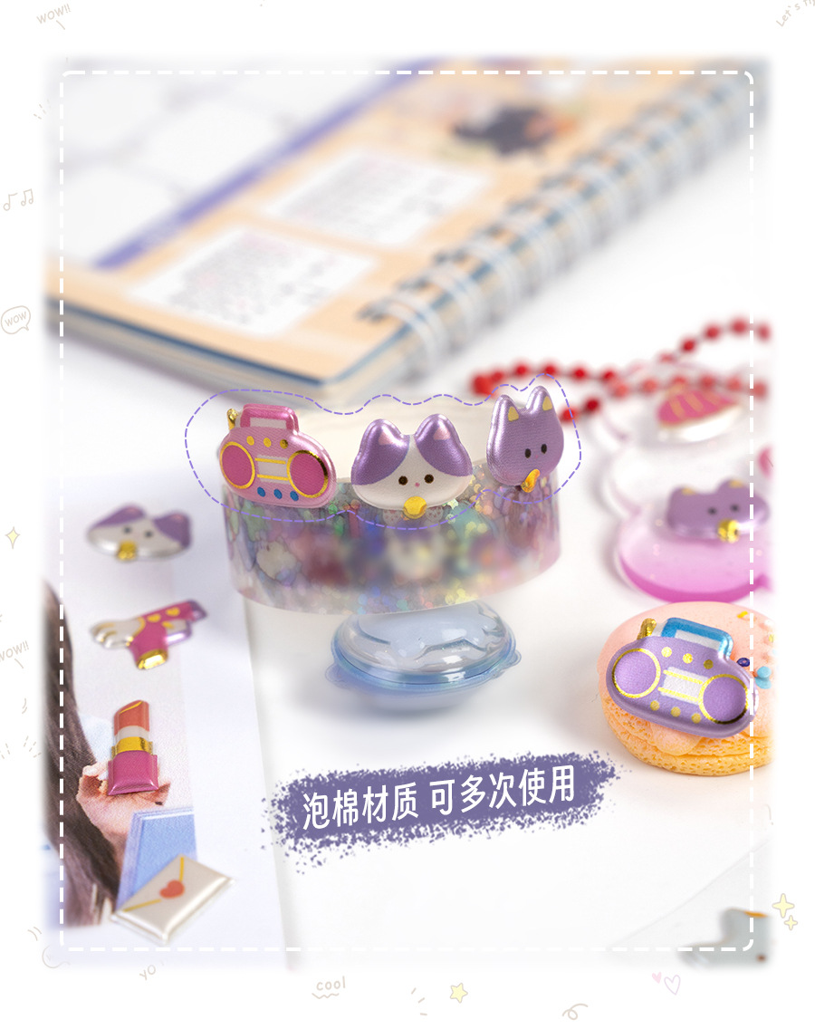 3d珠光金箔炫彩贴日系杂货图案儿童立体贴纸女生奖励手工装饰素材