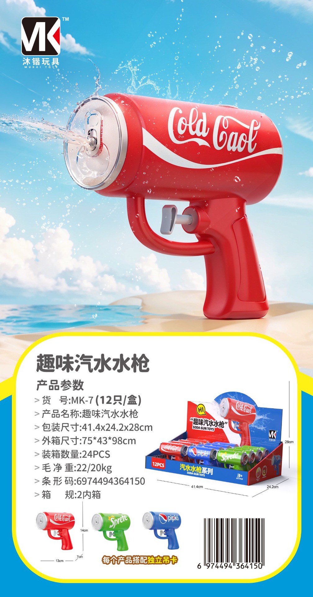 12只仿真趣味易拉罐汽水水枪景区漂流浴室戏水男女孩儿童玩具摆摊