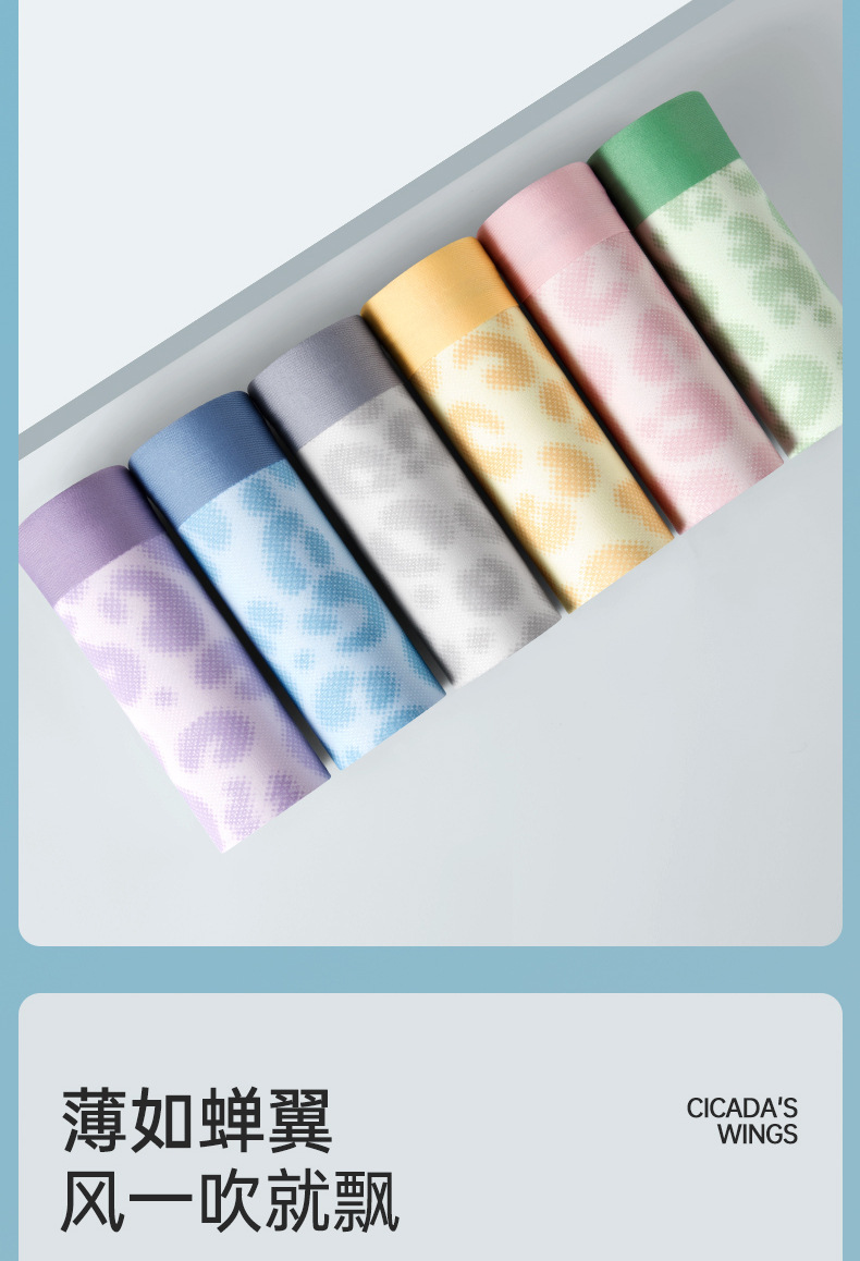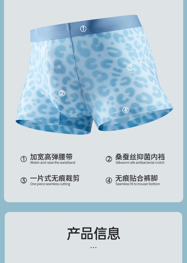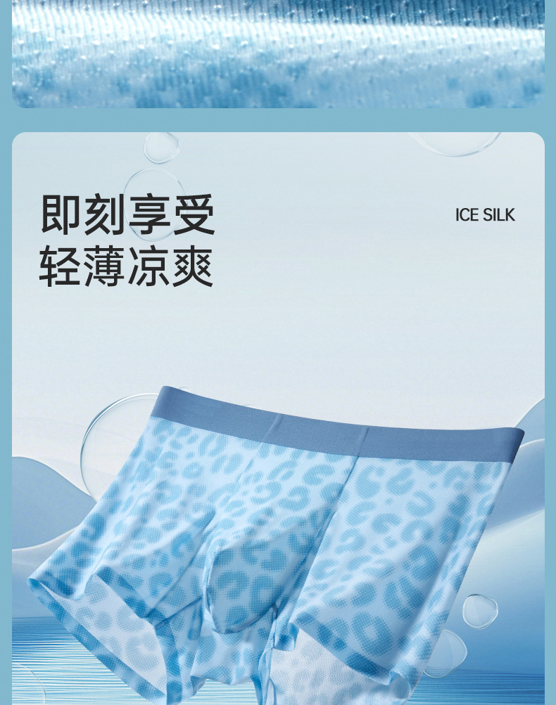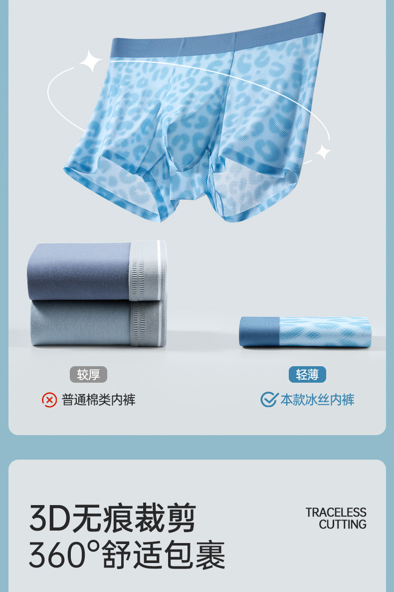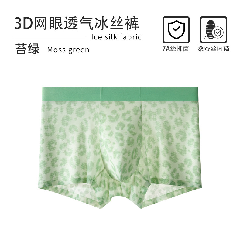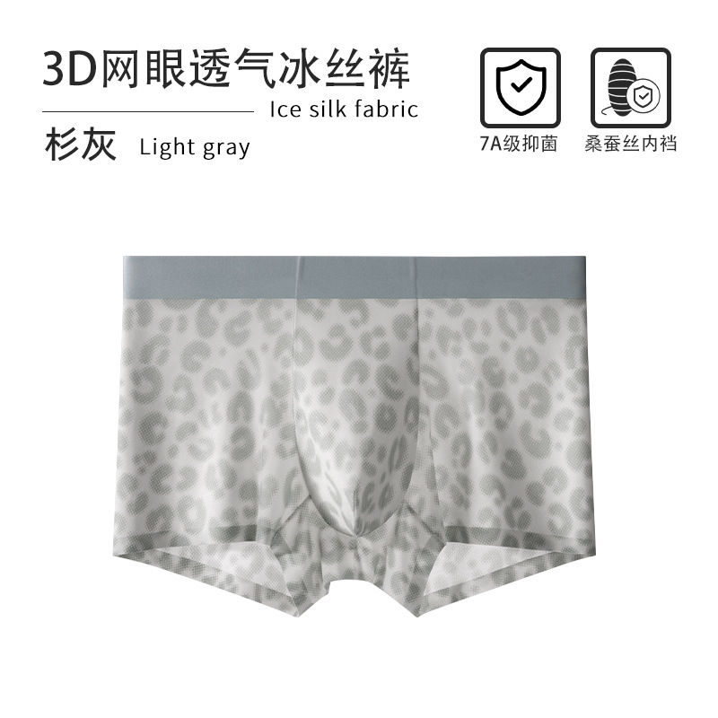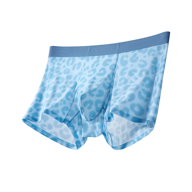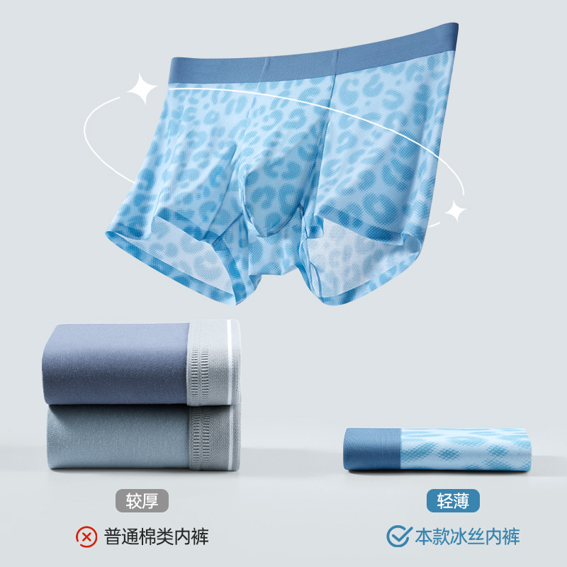 超薄冰丝男士内裤夏季透气速干平角裤锦纶印花网眼性感四角裤批发
