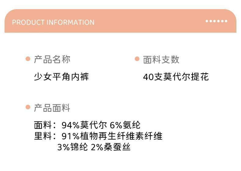 女童内裤莫代尔A类冰丝学生儿童中大童平角裤抗四角裤夏季薄款