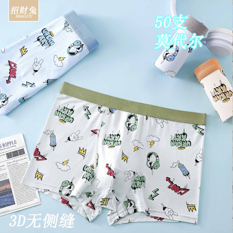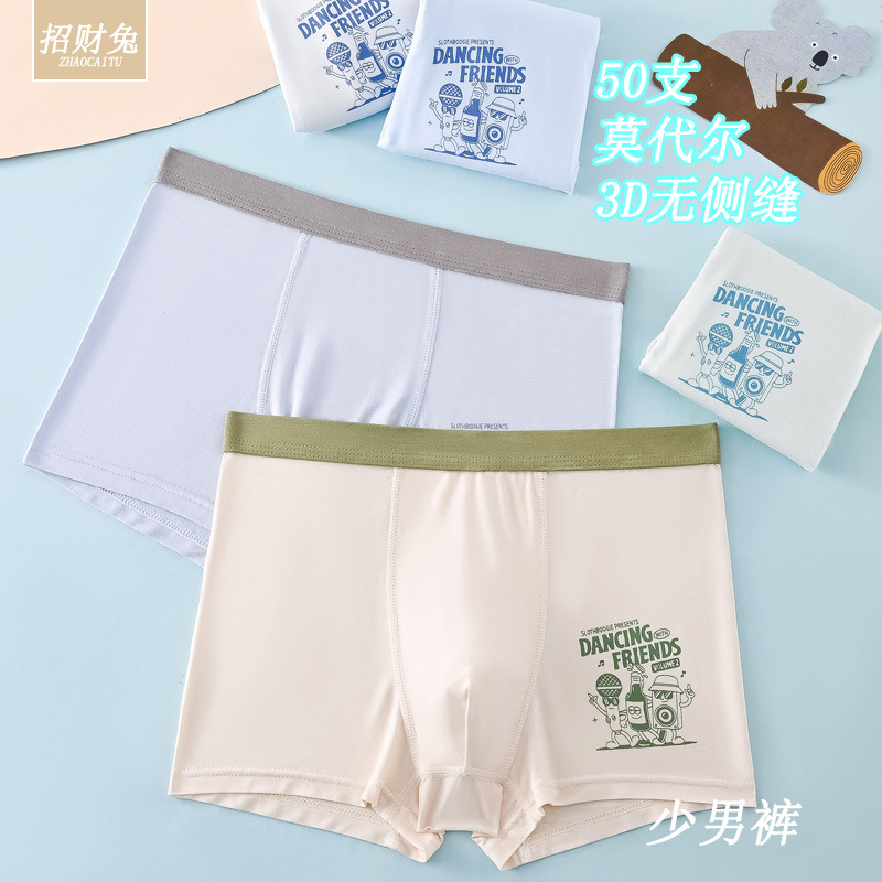 儿童内裤男大童50支莫代尔棉3D无侧缝青少年学生纯色内裤10-15岁