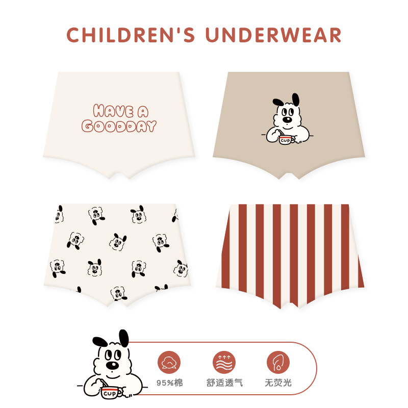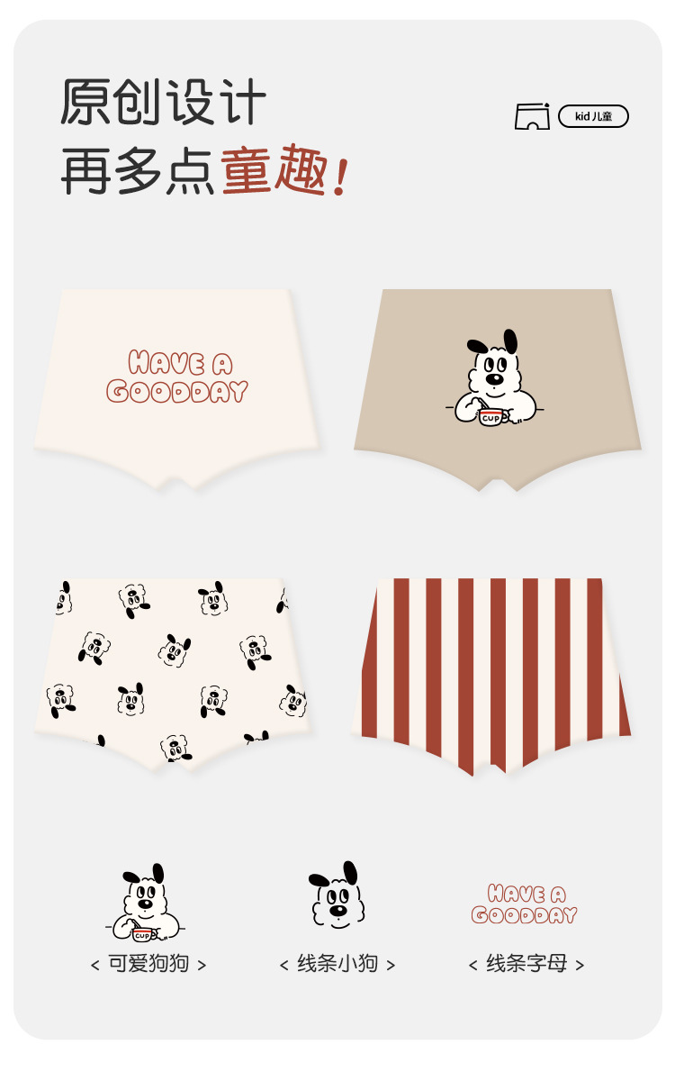 儿童内裤秋季新款卡通小狗线条男童内裤A类纯棉儿童平角内裤
