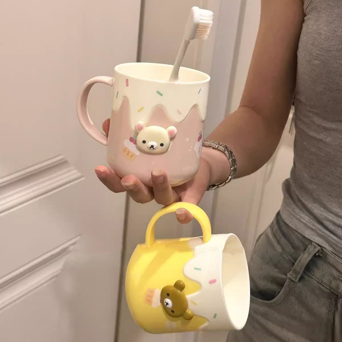 可爱轻松熊洗漱杯情侣漱口杯家用高颜值刷牙杯漱口学生宿舍杯子