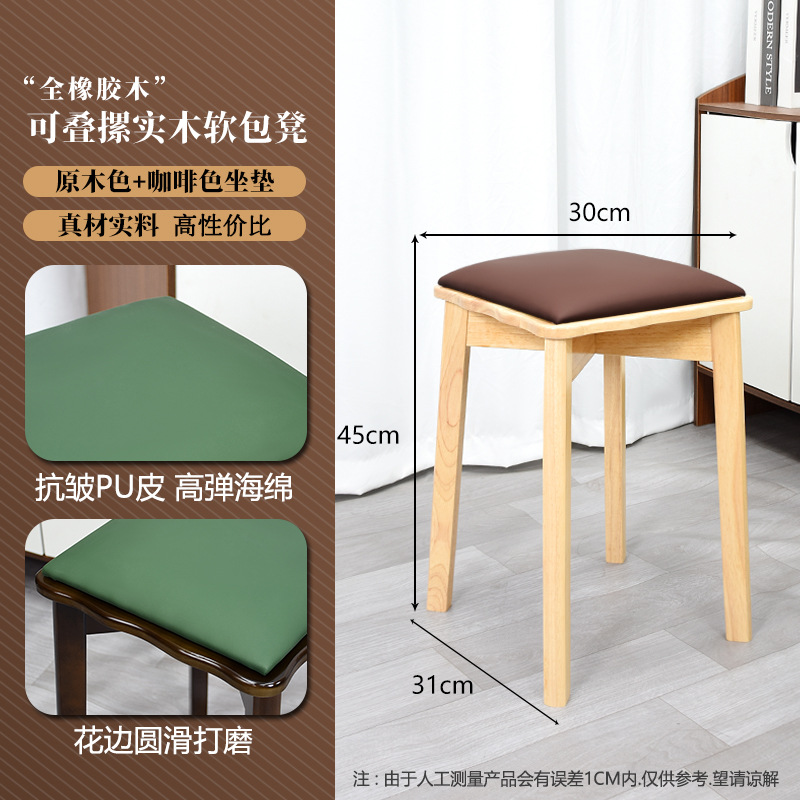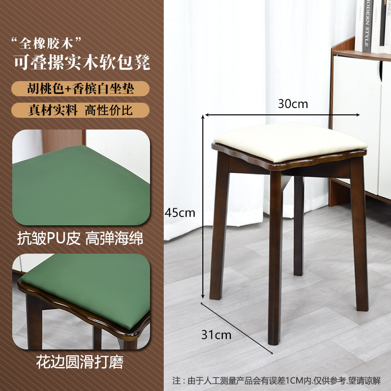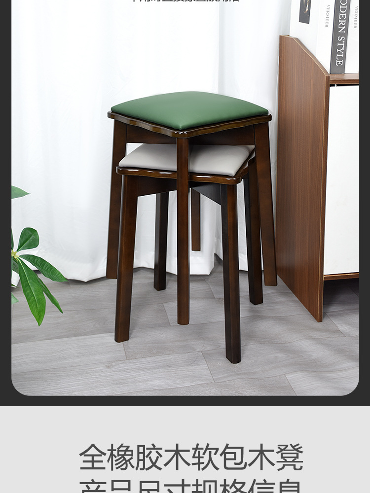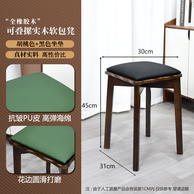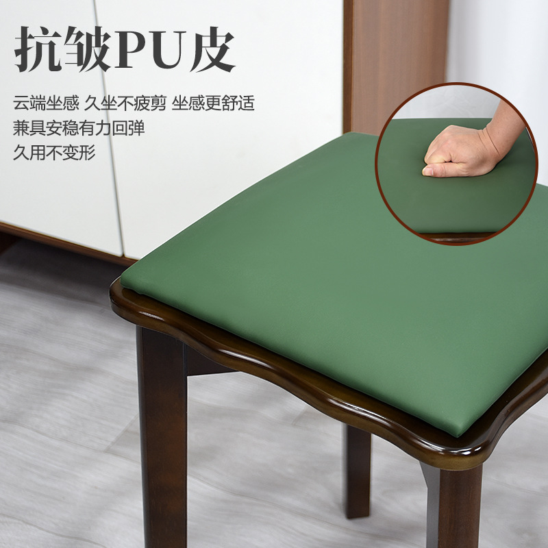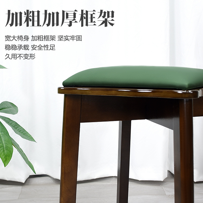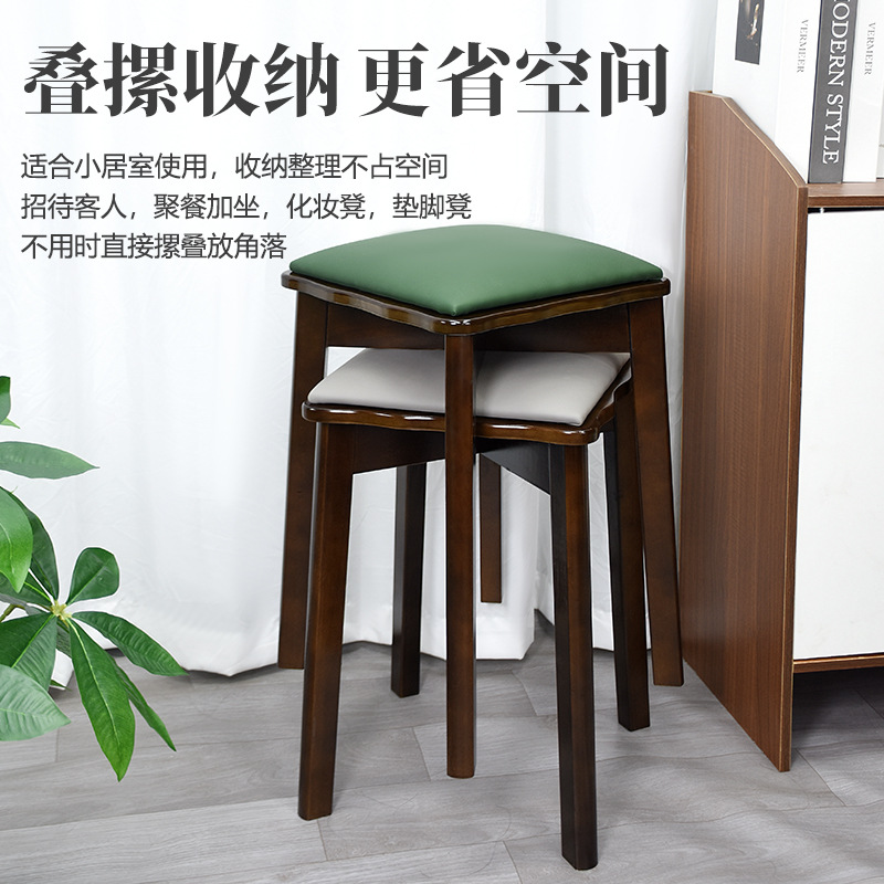 实木软包凳子可叠放家用备用方凳中古餐凳PU皮客厅餐厅餐桌板凳
