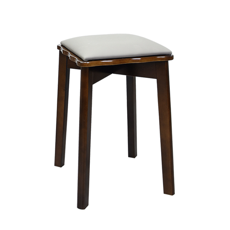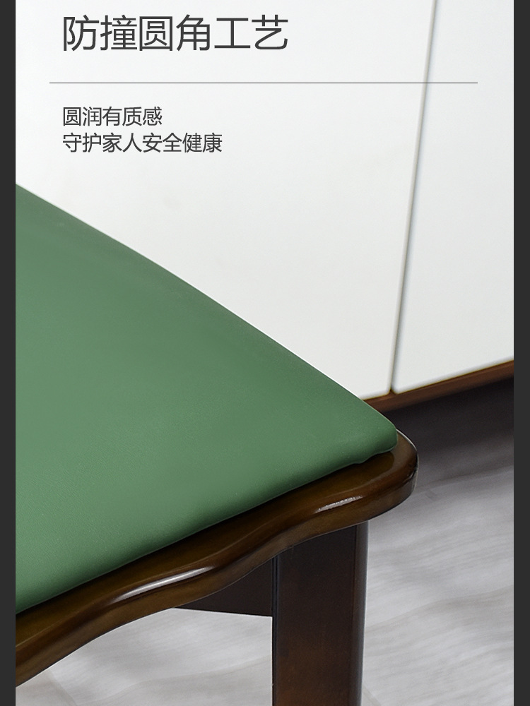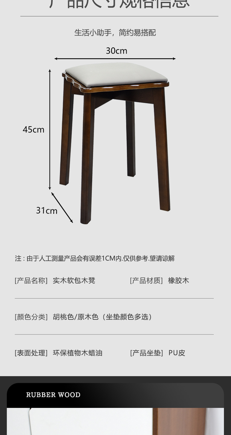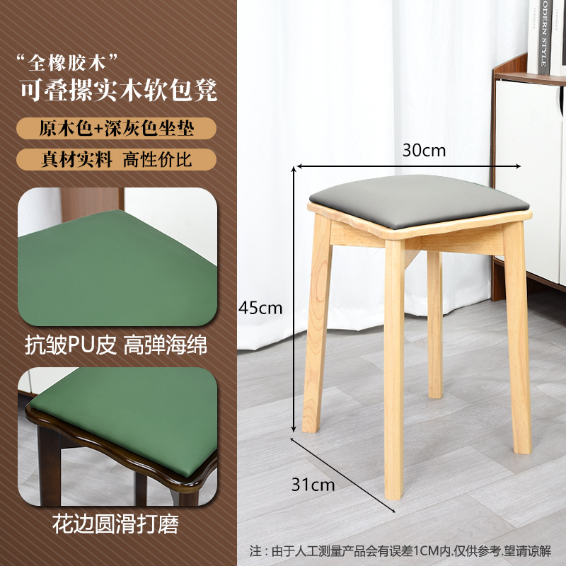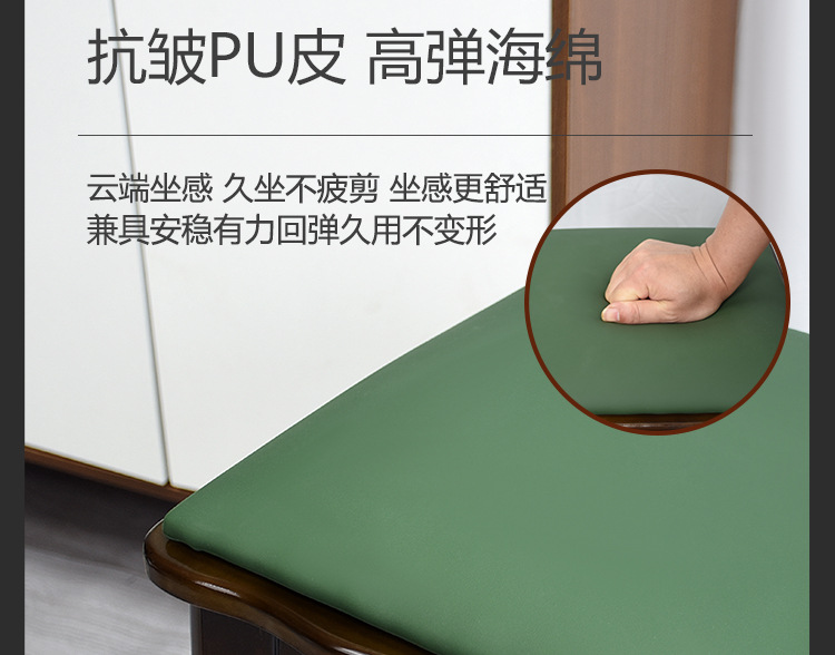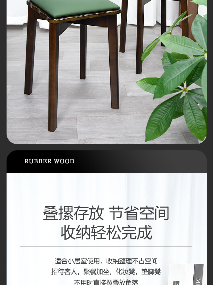 实木软包凳子可叠放家用备用方凳中古餐凳PU皮客厅餐厅餐桌板凳