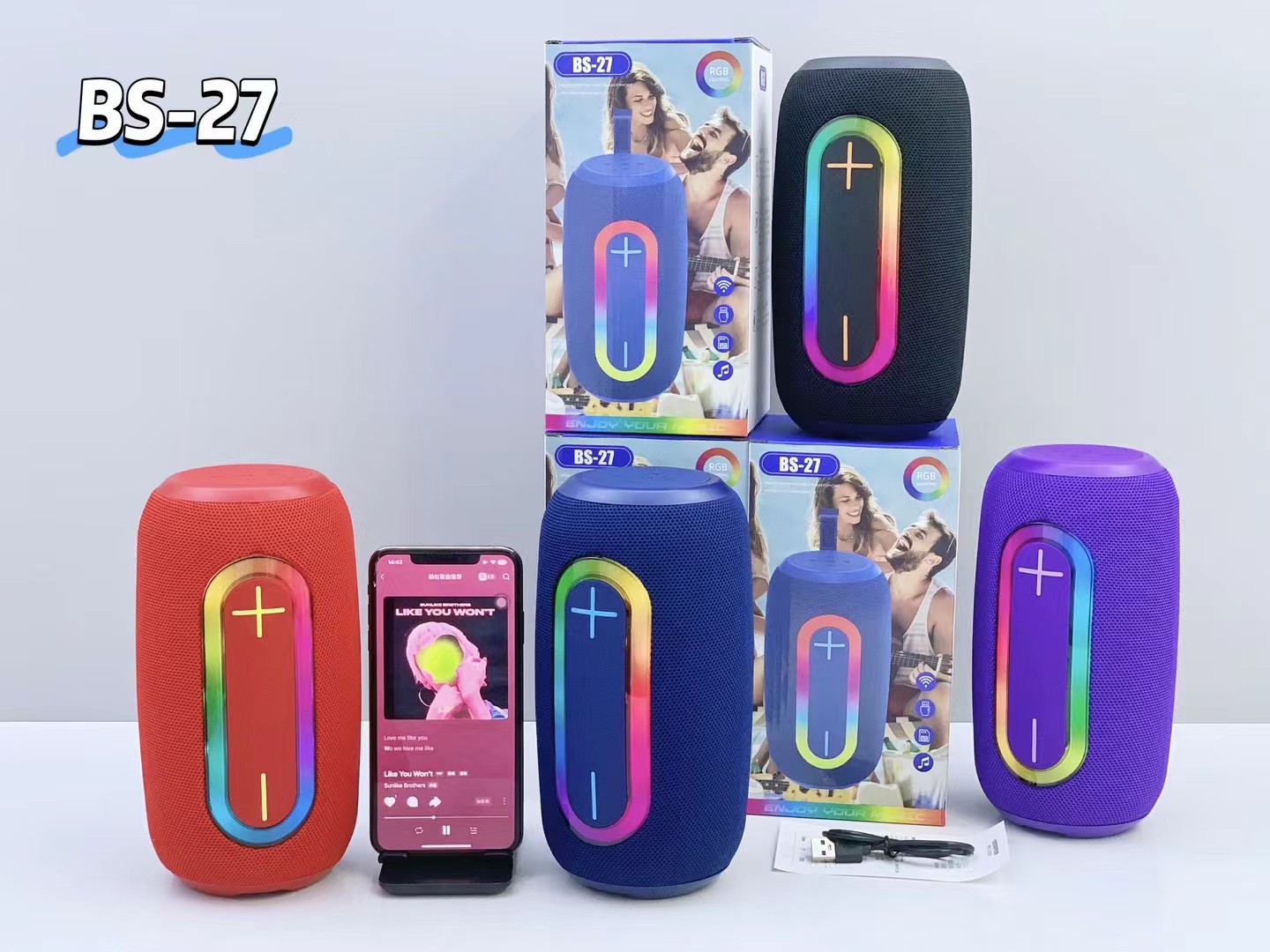 BS-27跨境新款手提RGB蓝牙音箱户外双喇叭低音炮桌面便携插卡音响