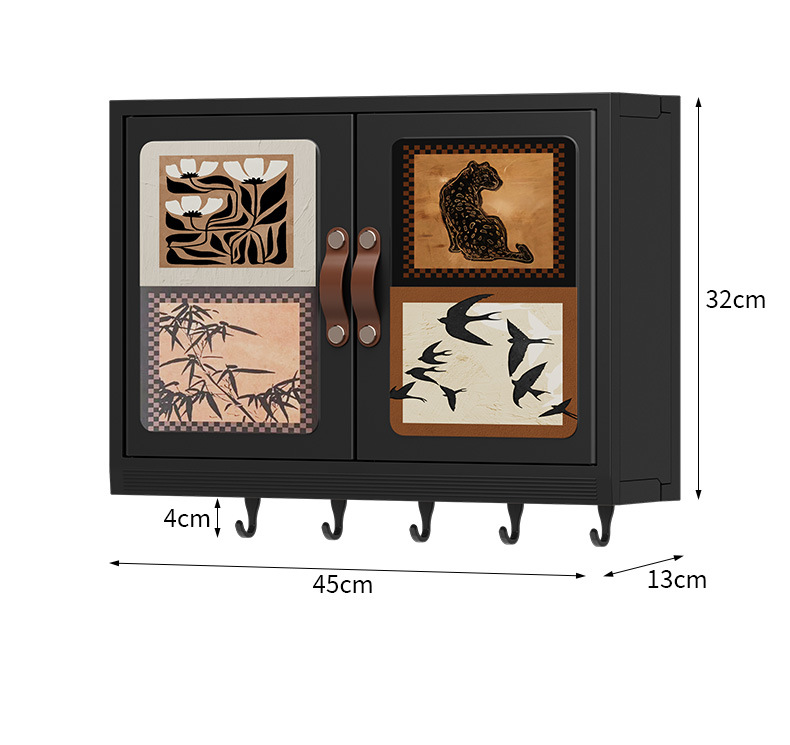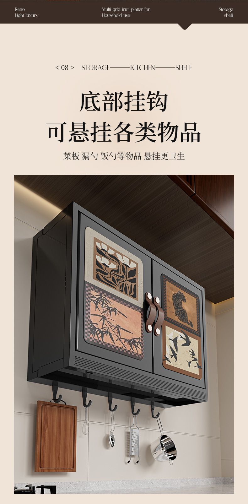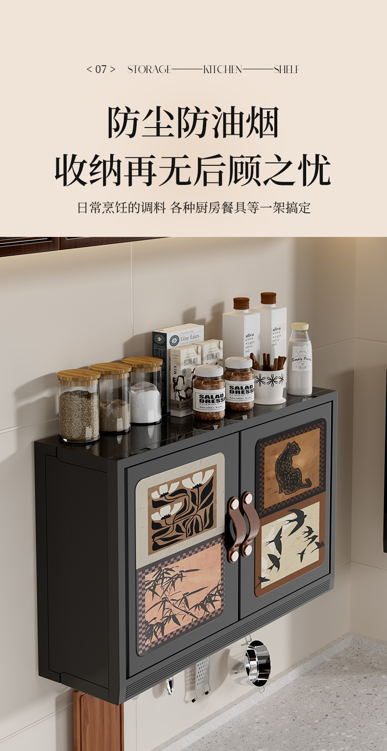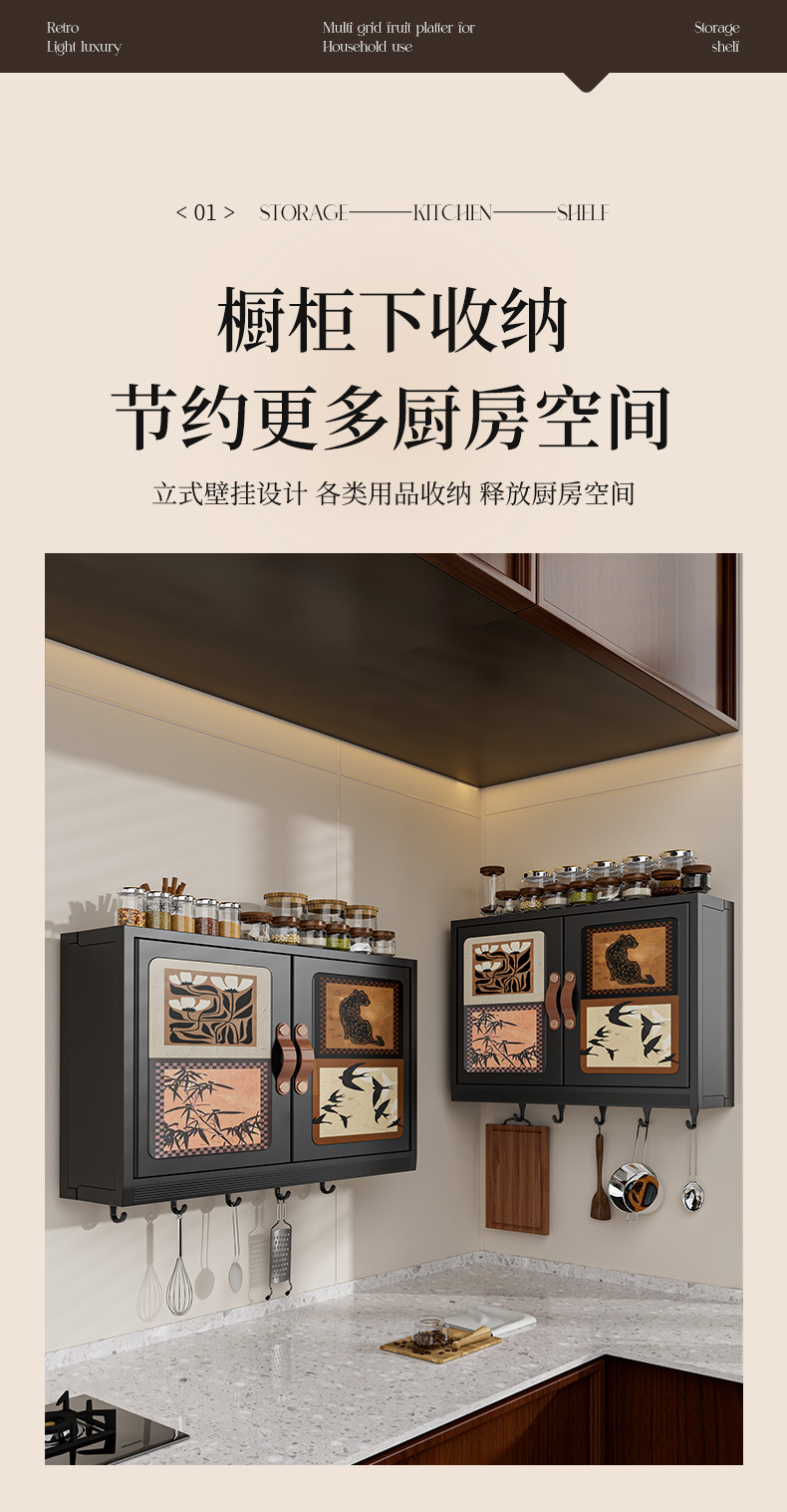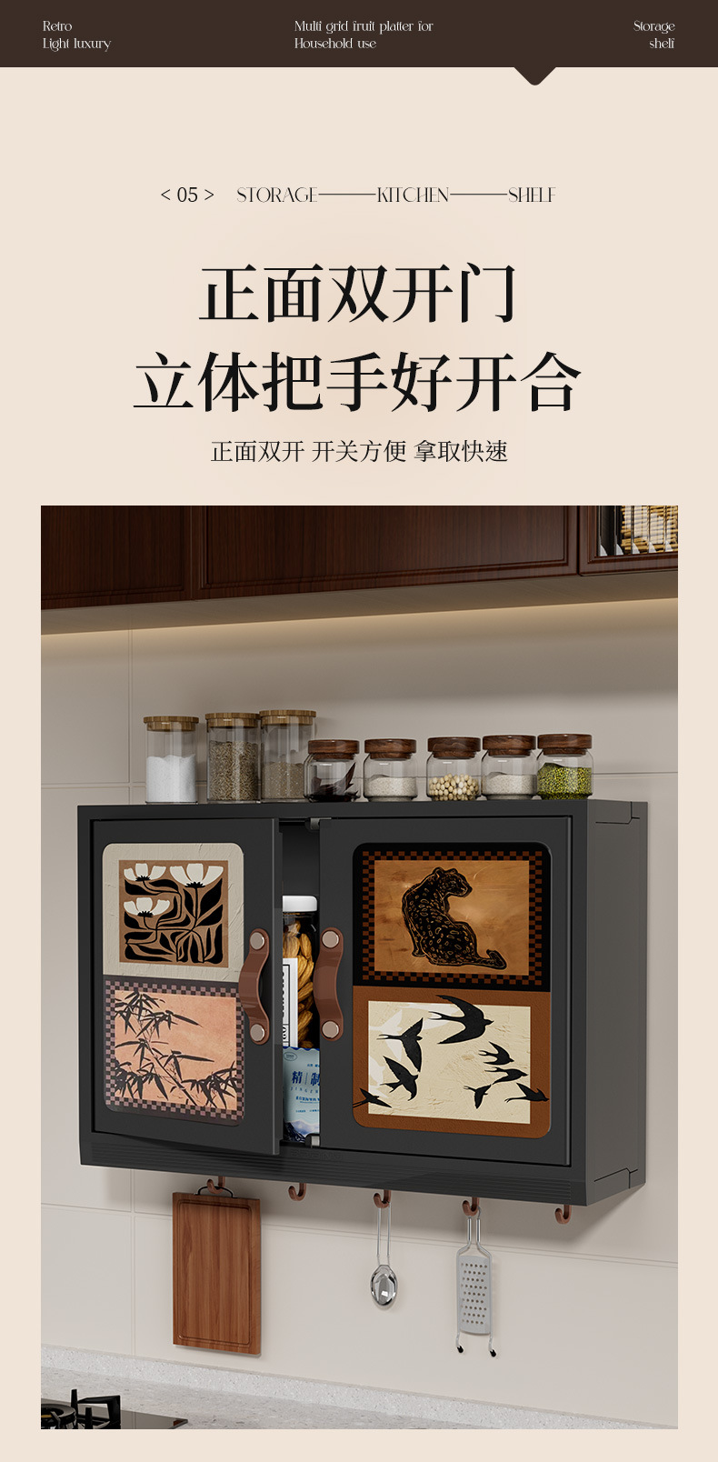 中古风厨房浴室壁挂式收纳盒免打孔挂墙带柜门带挂钩收纳架多功能