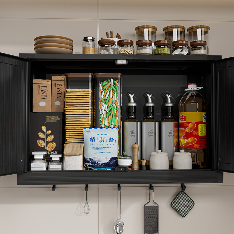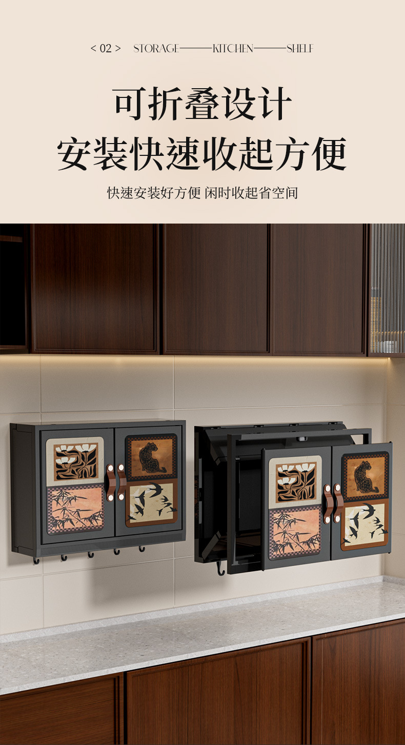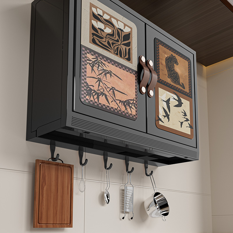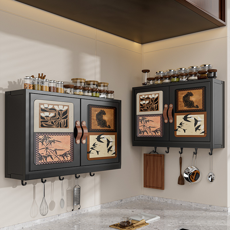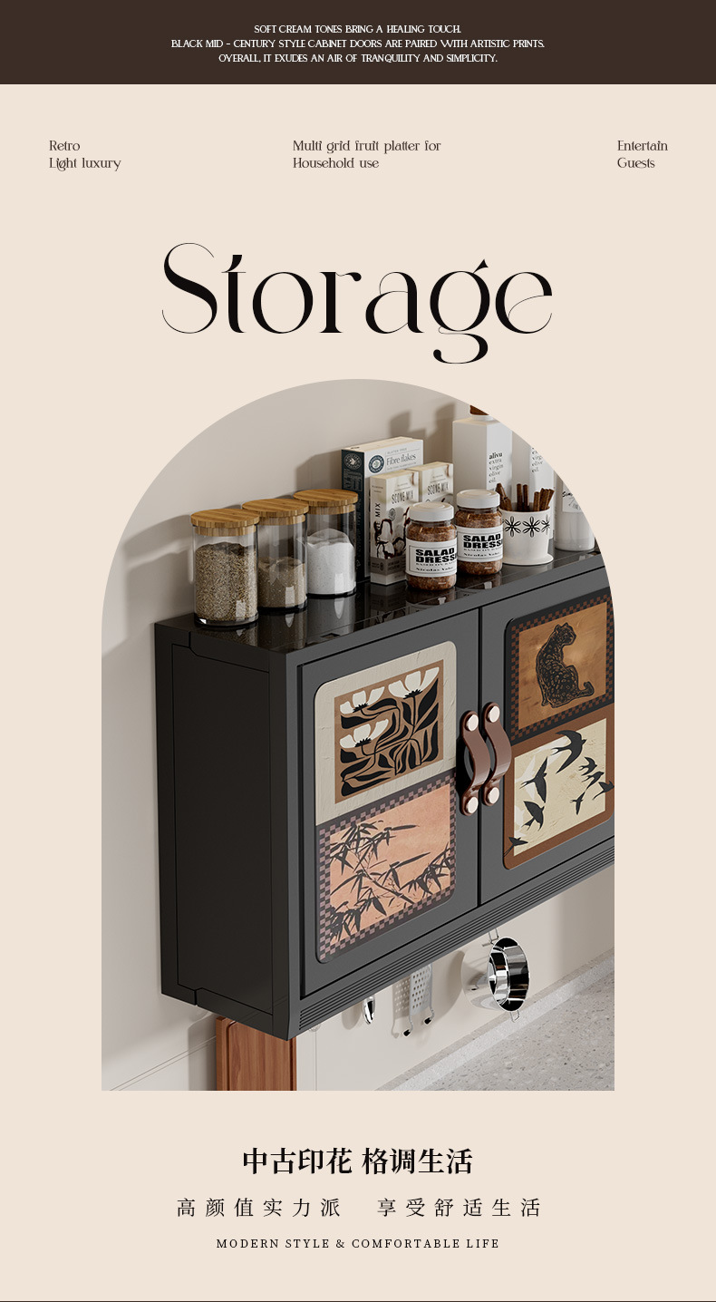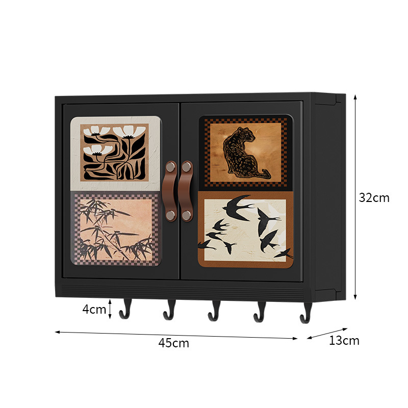 中古风厨房浴室壁挂式收纳盒免打孔挂墙带柜门带挂钩收纳架多功能