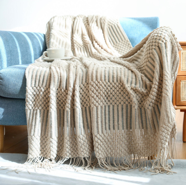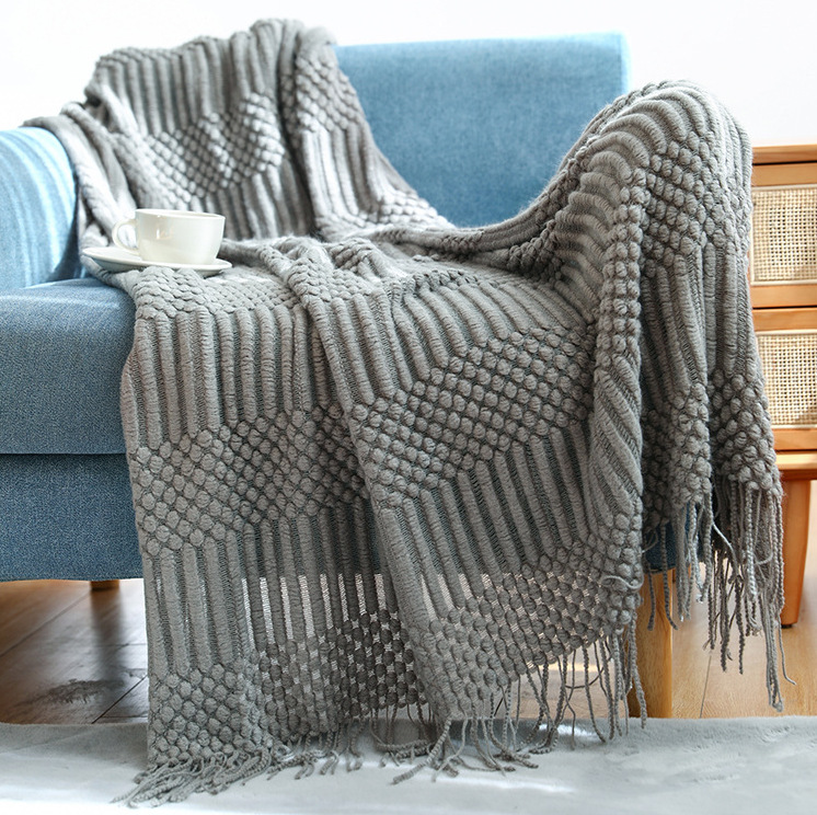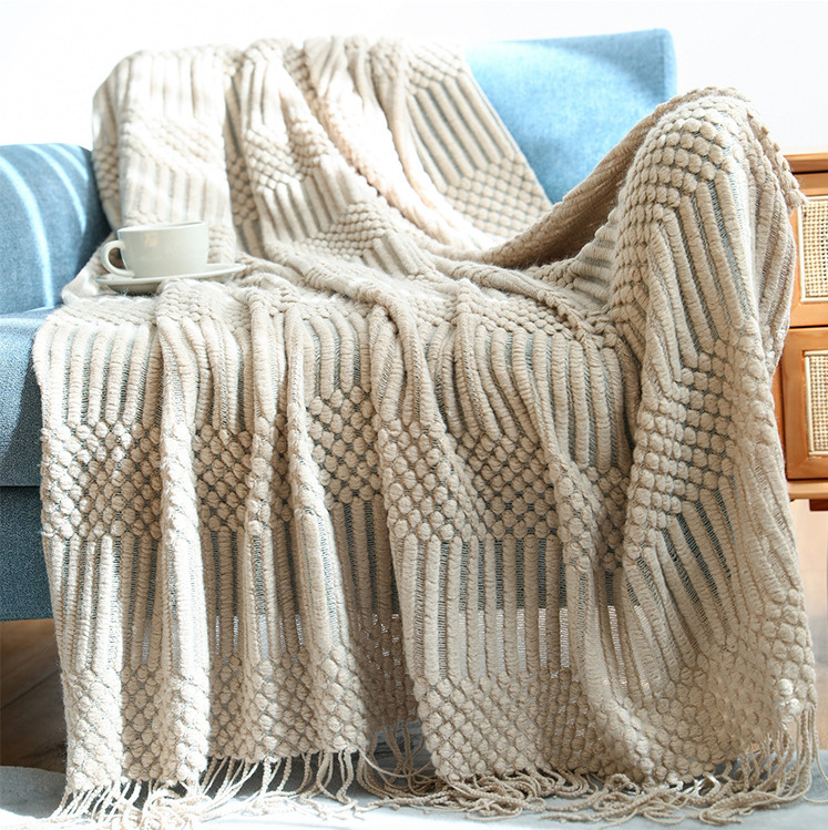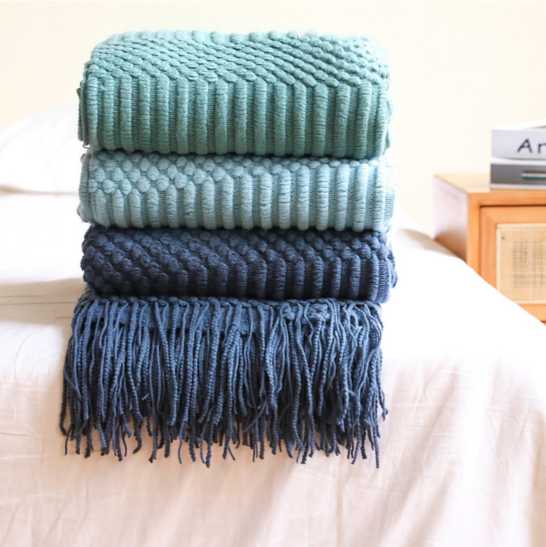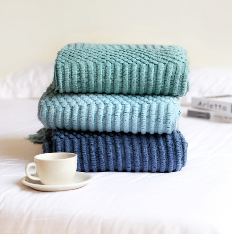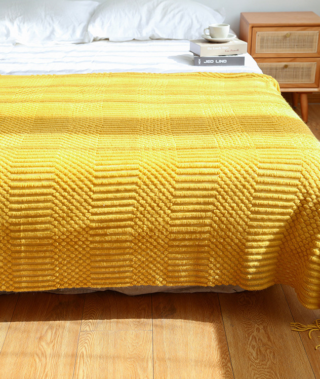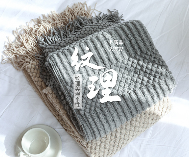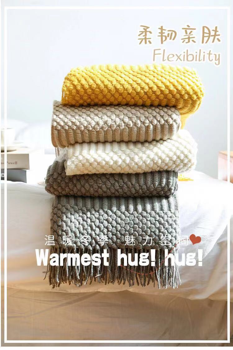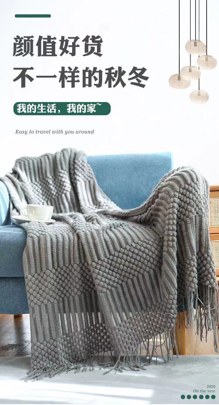 欧式简约秋冬季新款ins风沙发毯床尾毯毛毯纯色空调毯专用毯子
