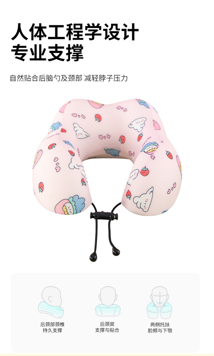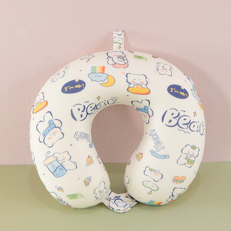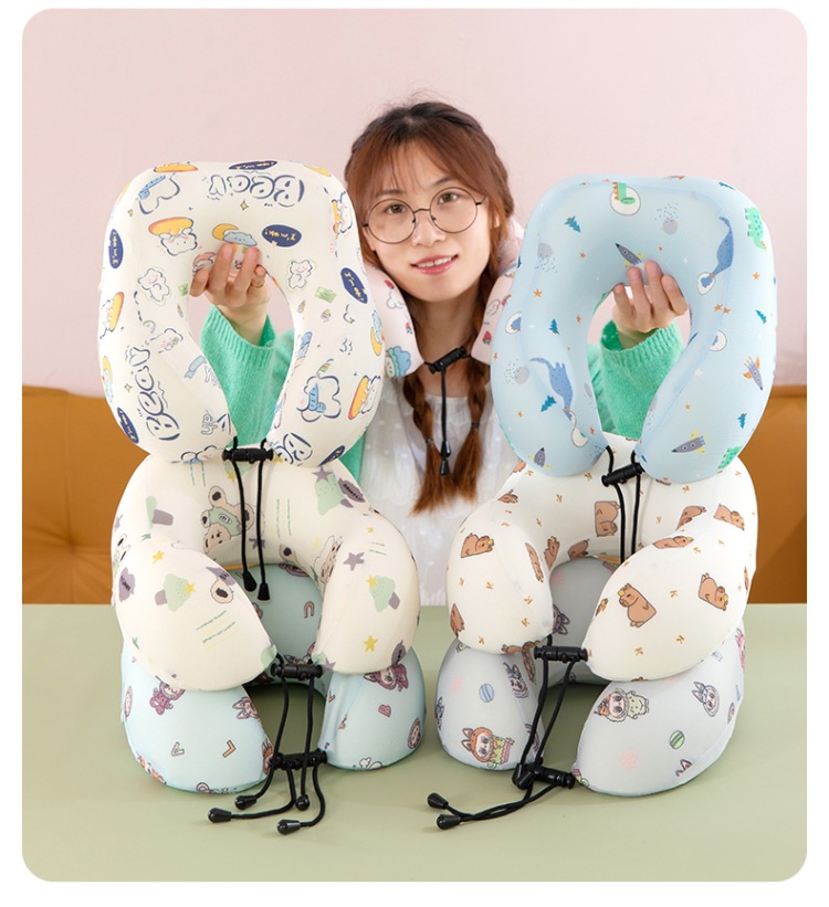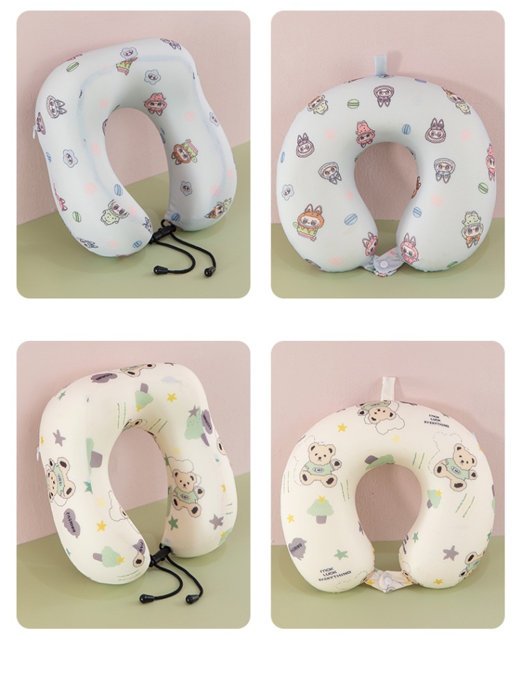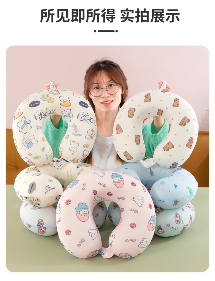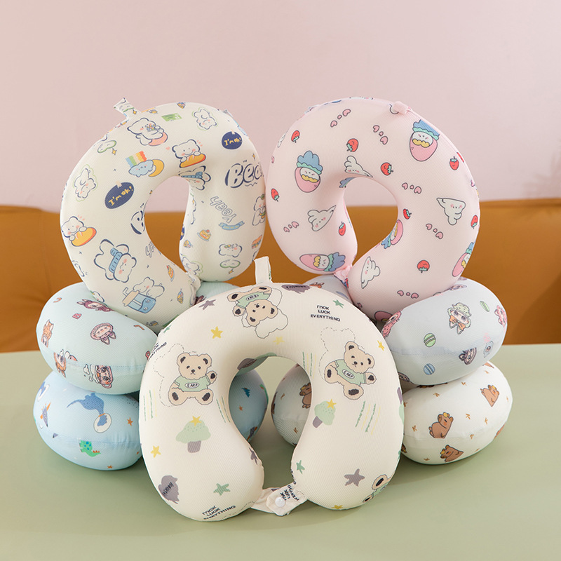 跨境夏季冰丝U型枕可爱印花冰丝护颈枕学生午休旅行办公趴睡神器