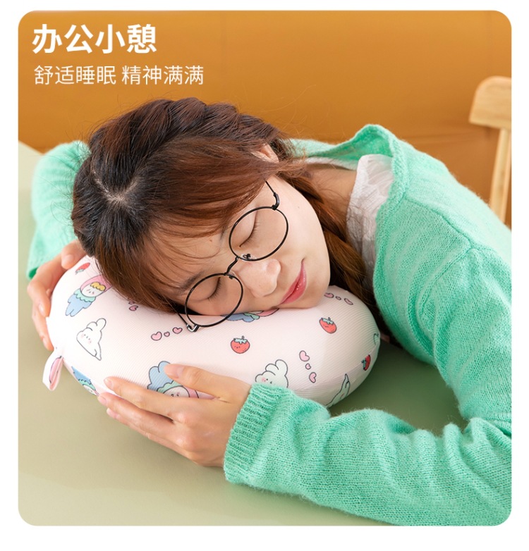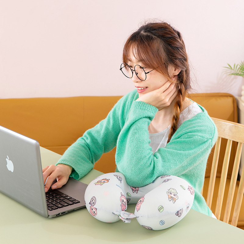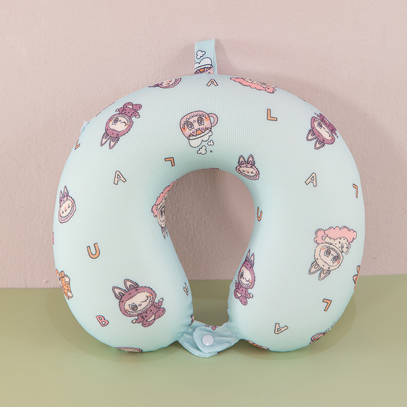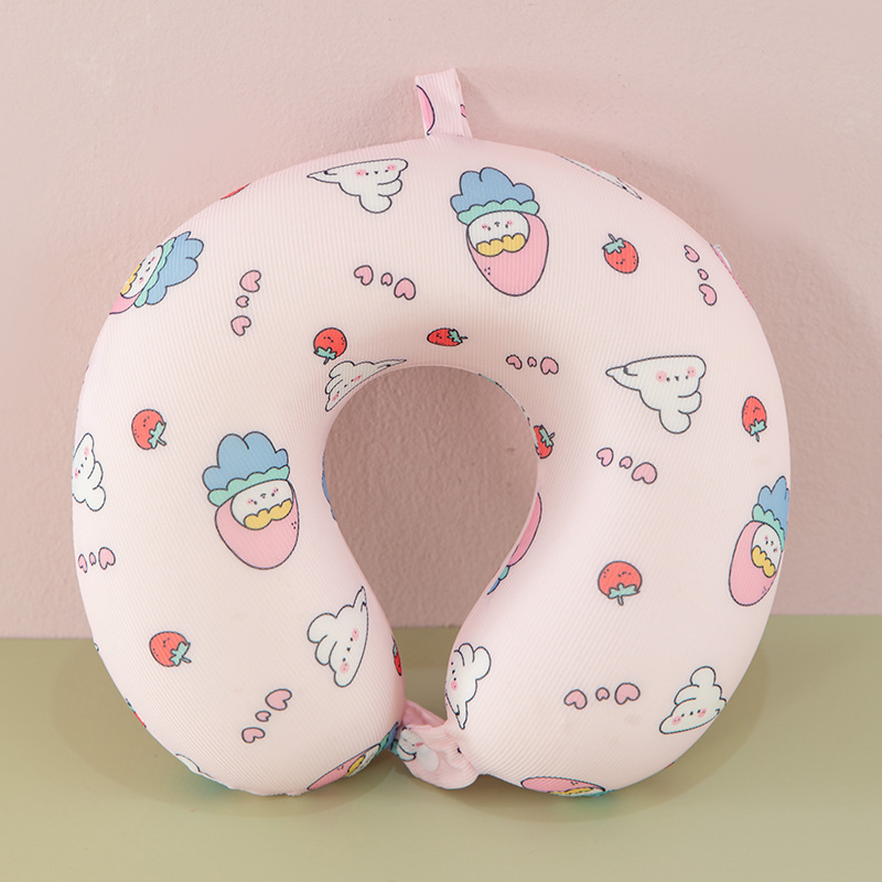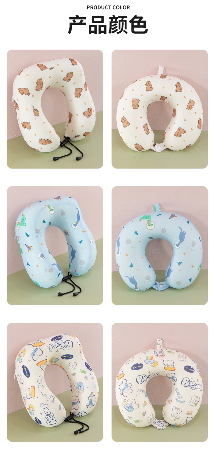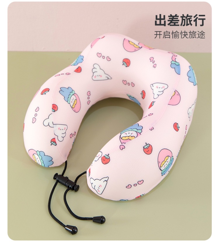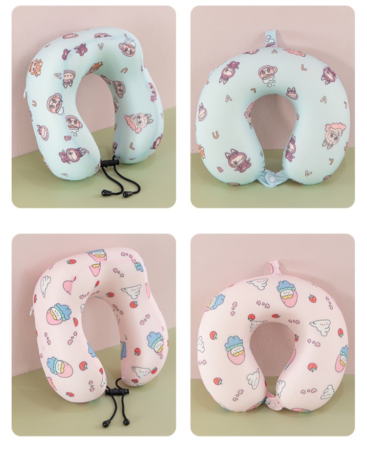 跨境夏季冰丝U型枕可爱印花冰丝护颈枕学生午休旅行办公趴睡神器
