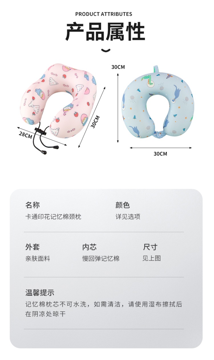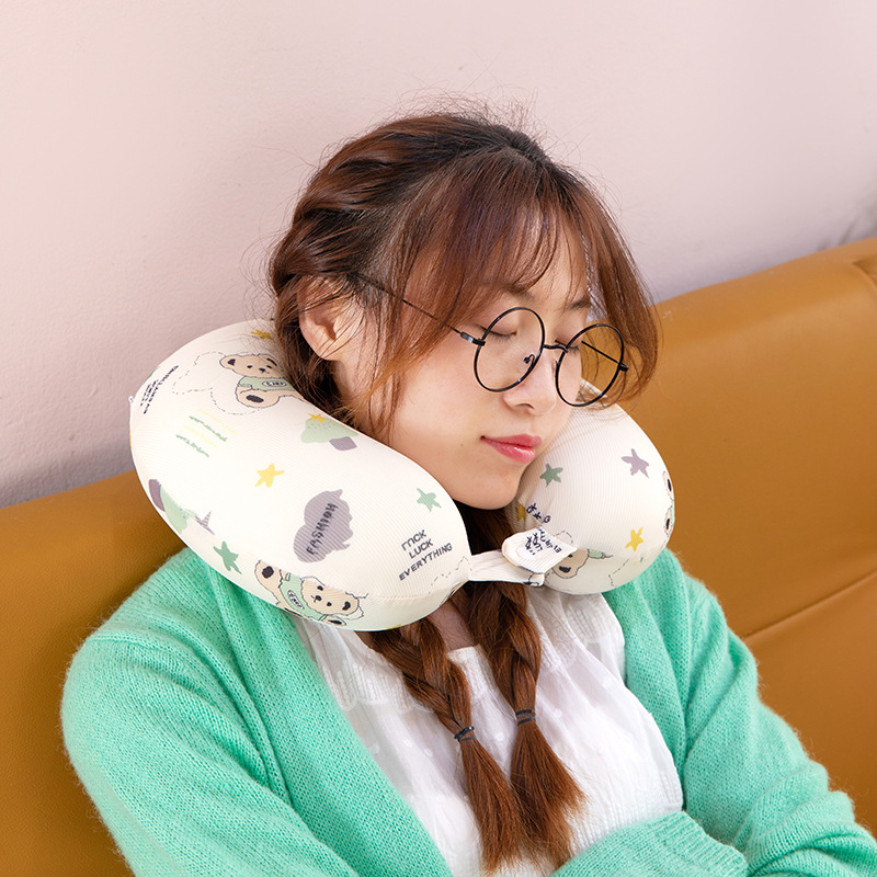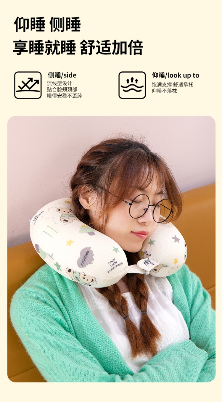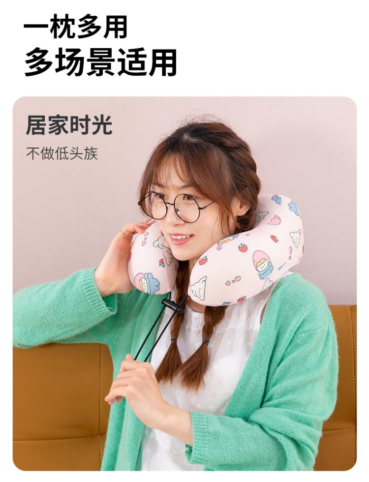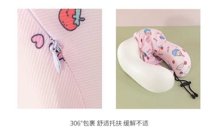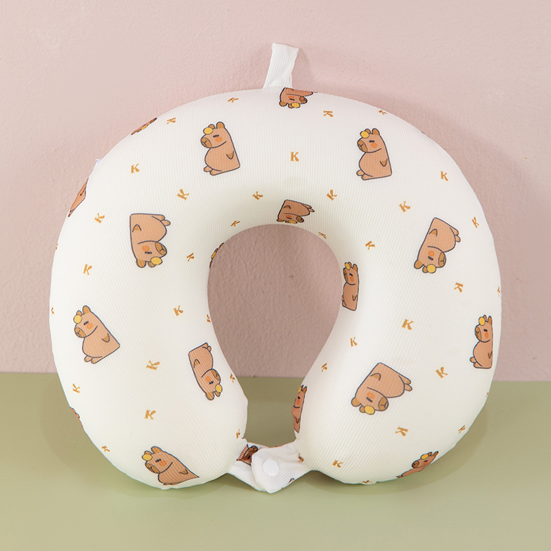 跨境夏季冰丝U型枕可爱印花冰丝护颈枕学生午休旅行办公趴睡神器