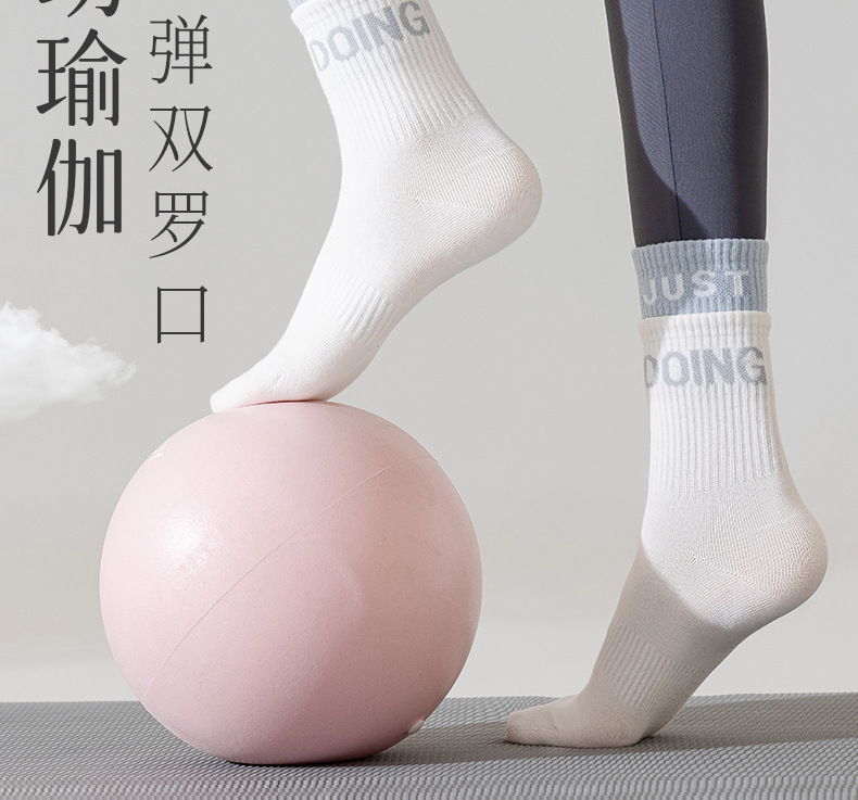 袜子夏女纯棉健身女袜中筒袜瑜伽袜普拉提棉袜专业防滑防磨运动袜
