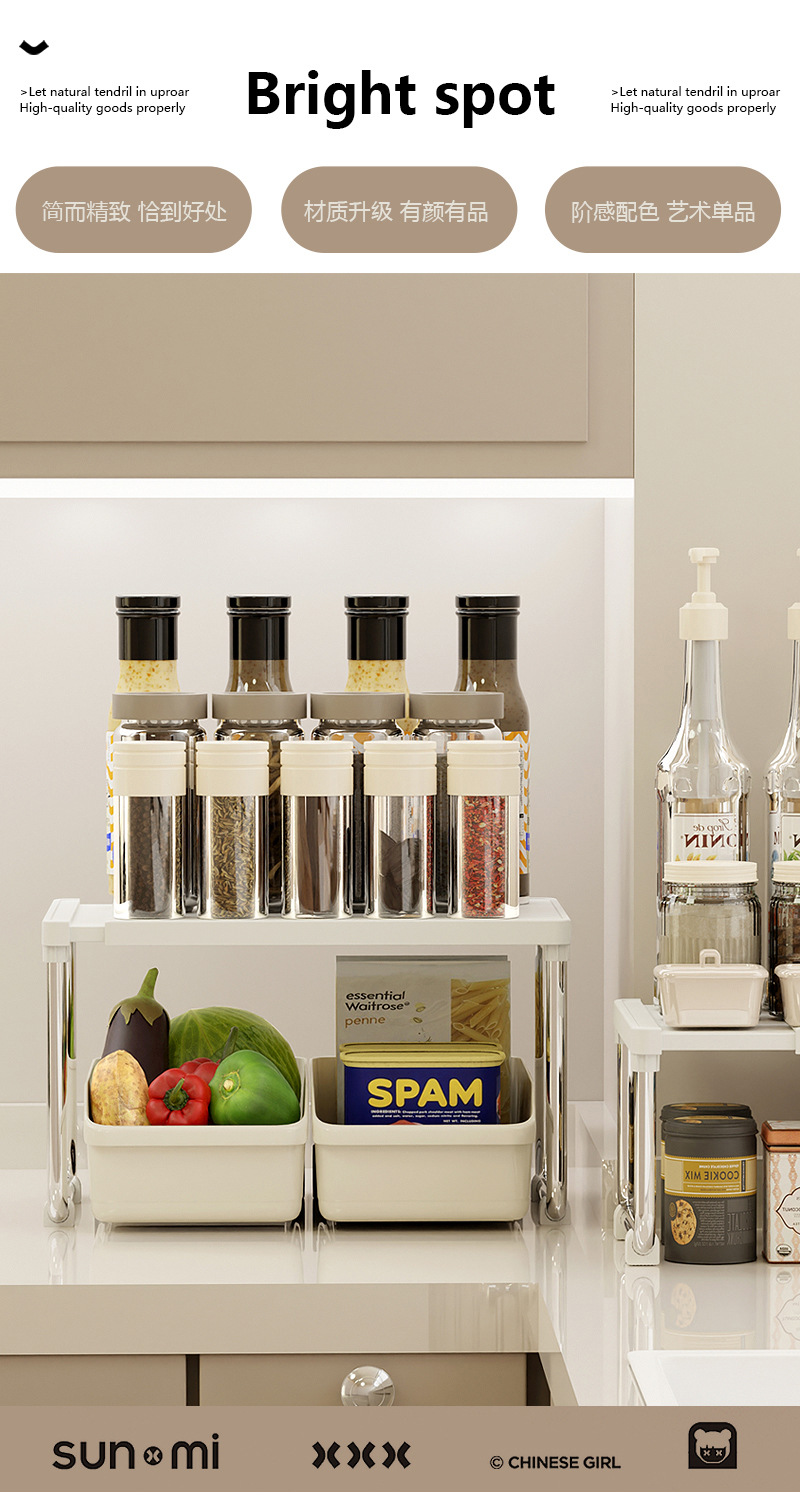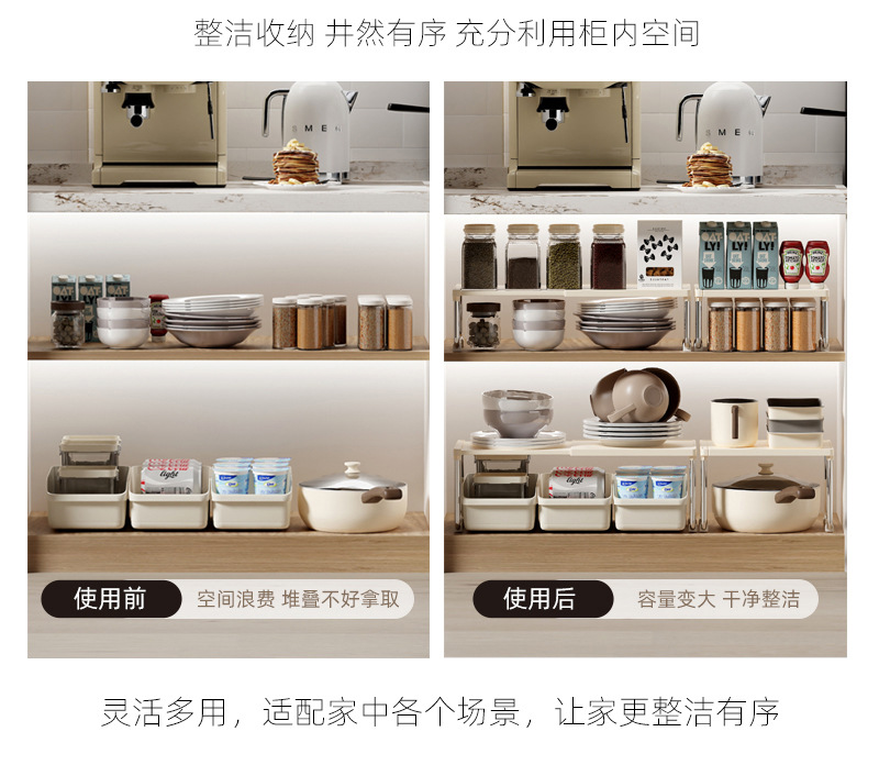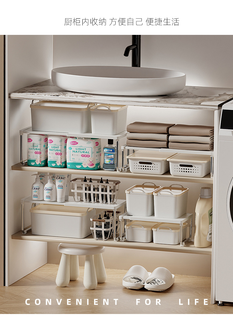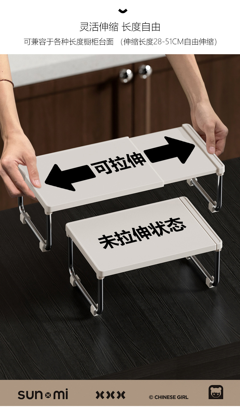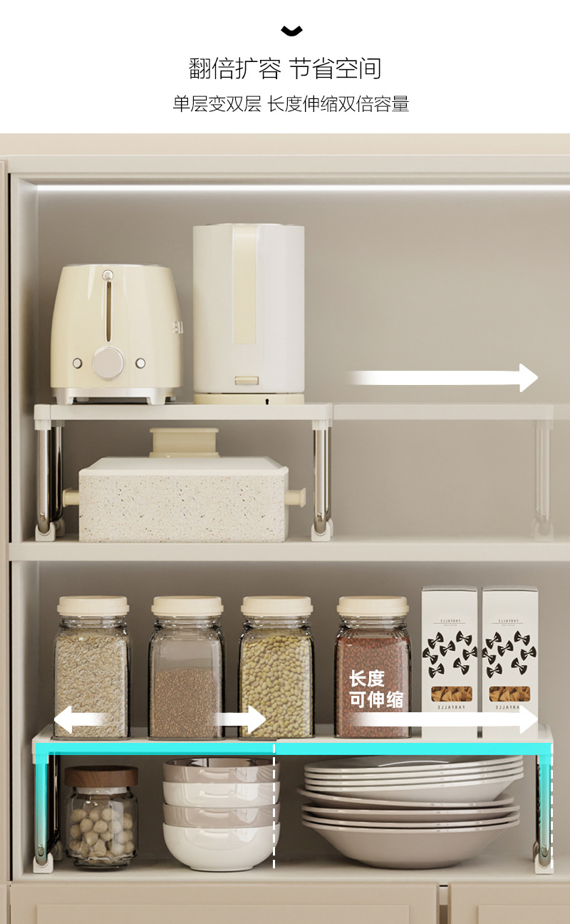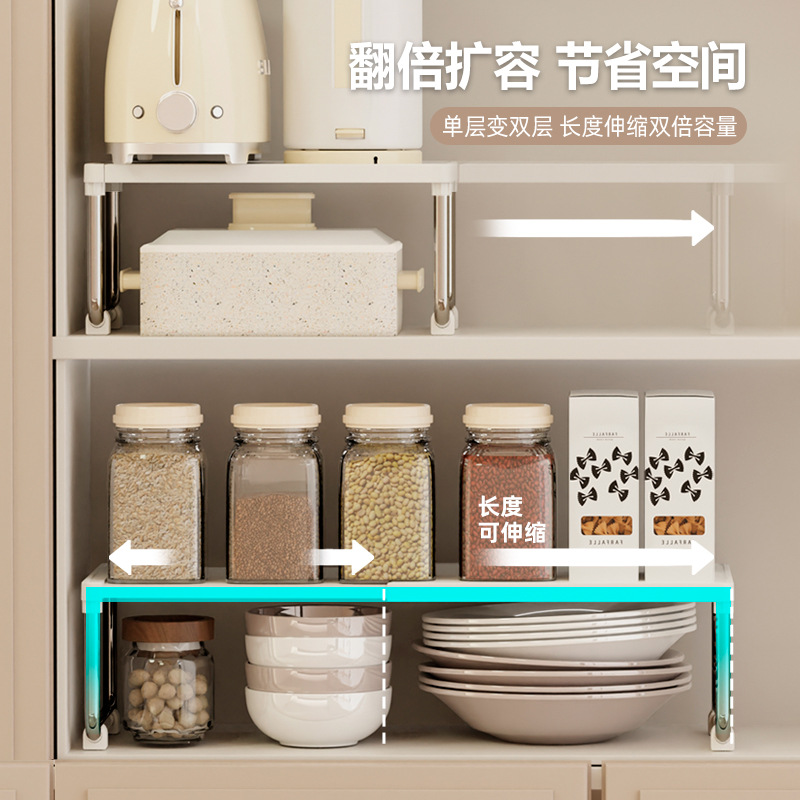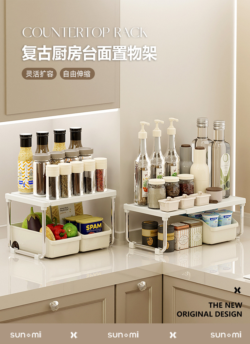 厨房置物架可伸缩置物架宿舍卫浴复古奶油风家用台面多功能收纳架