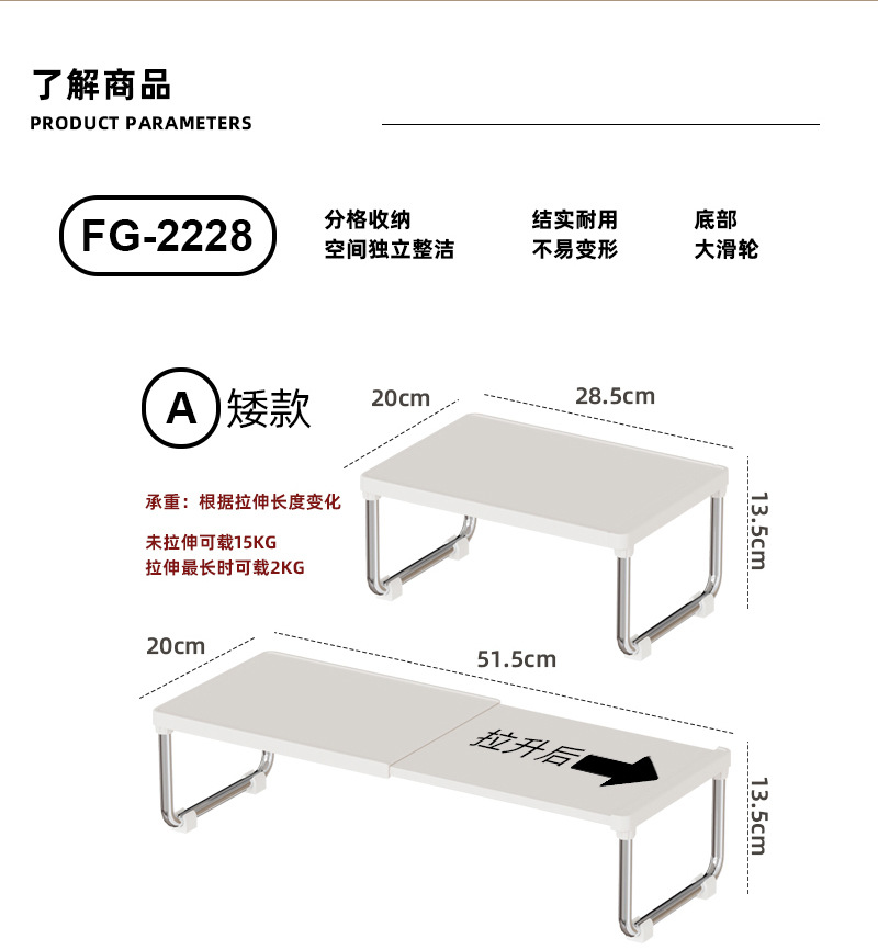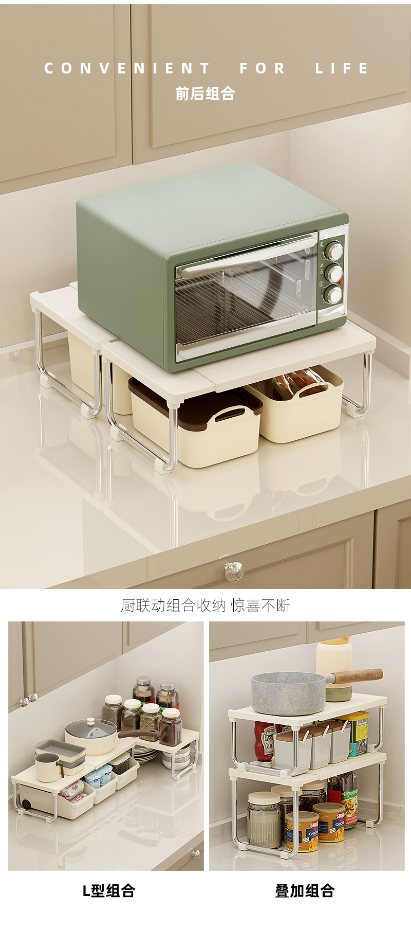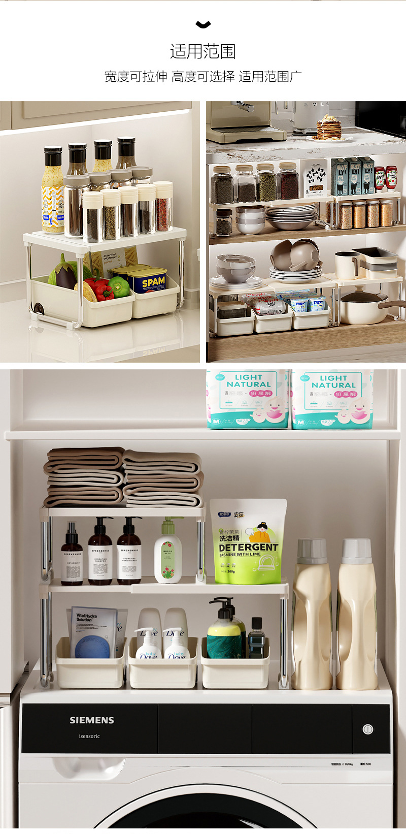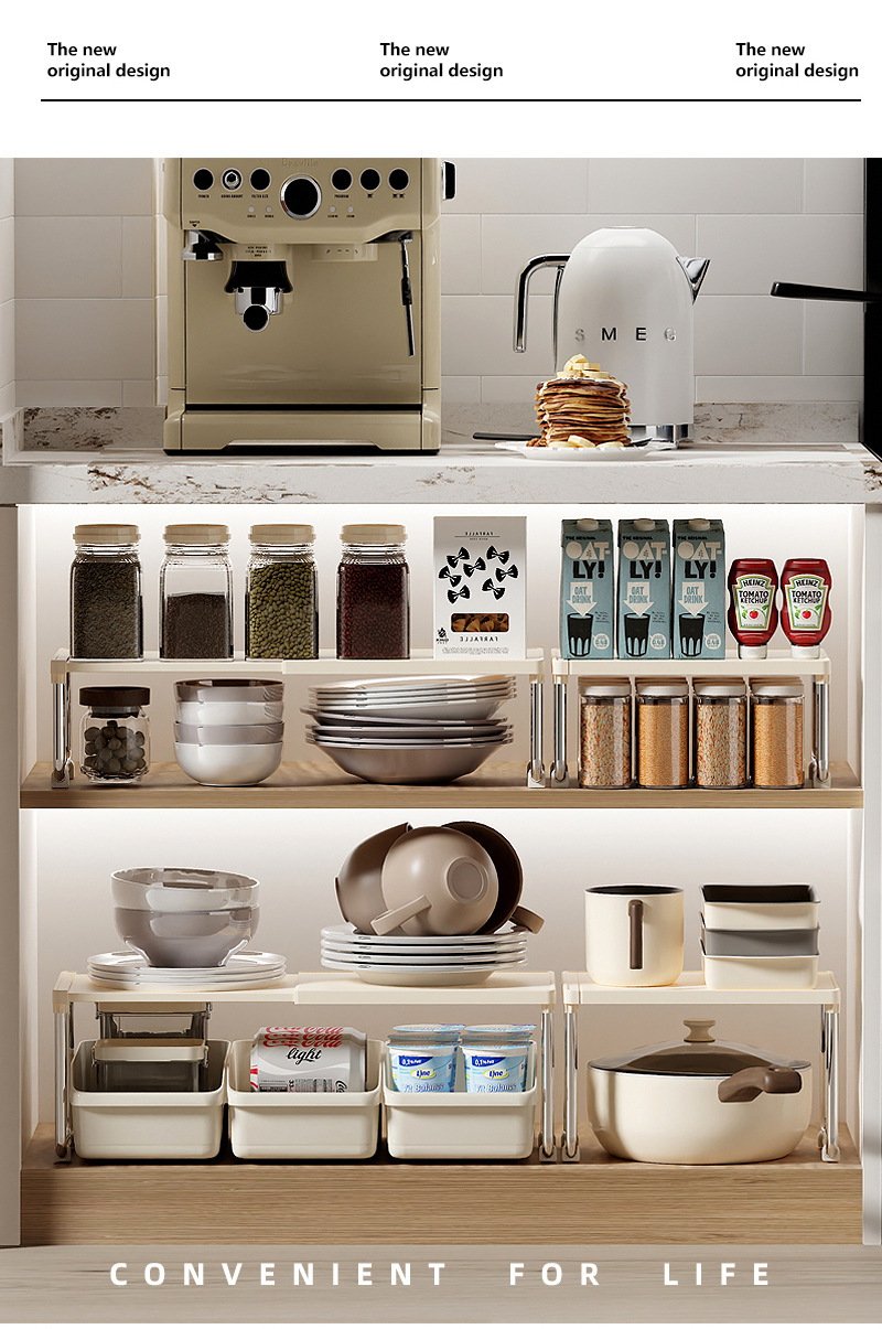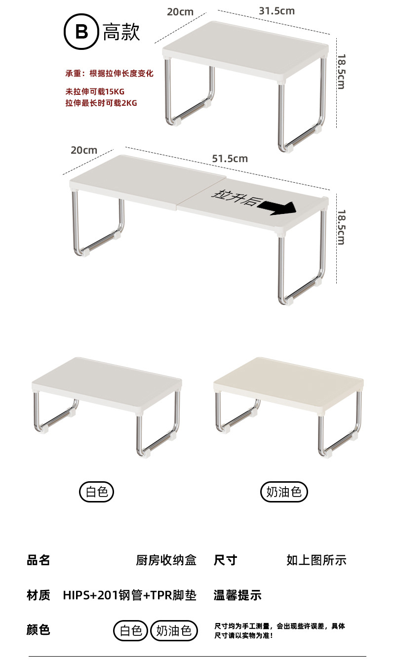 厨房置物架可伸缩置物架宿舍卫浴复古奶油风家用台面多功能收纳架