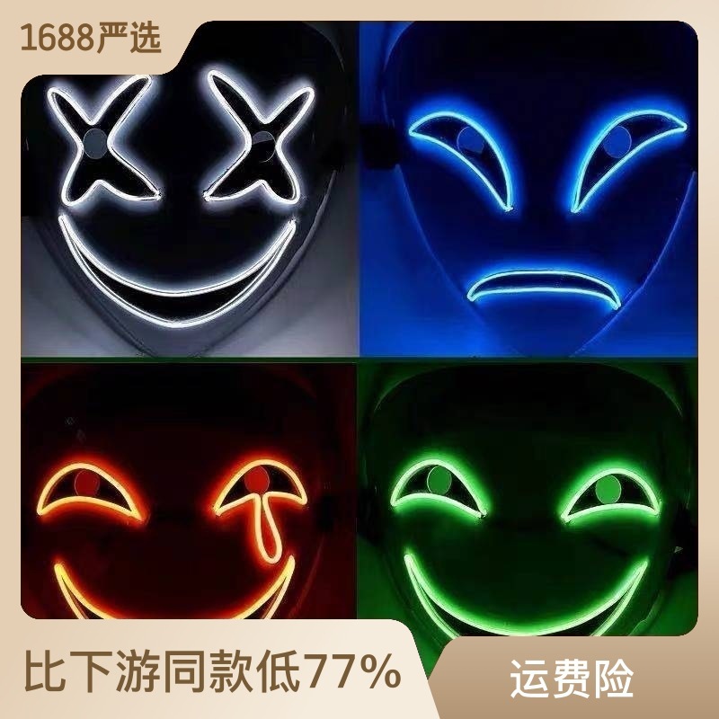 EL发光面具无线搞怪恐怖鬼步舞化妆舞会抖音派对万圣节现货万圣节