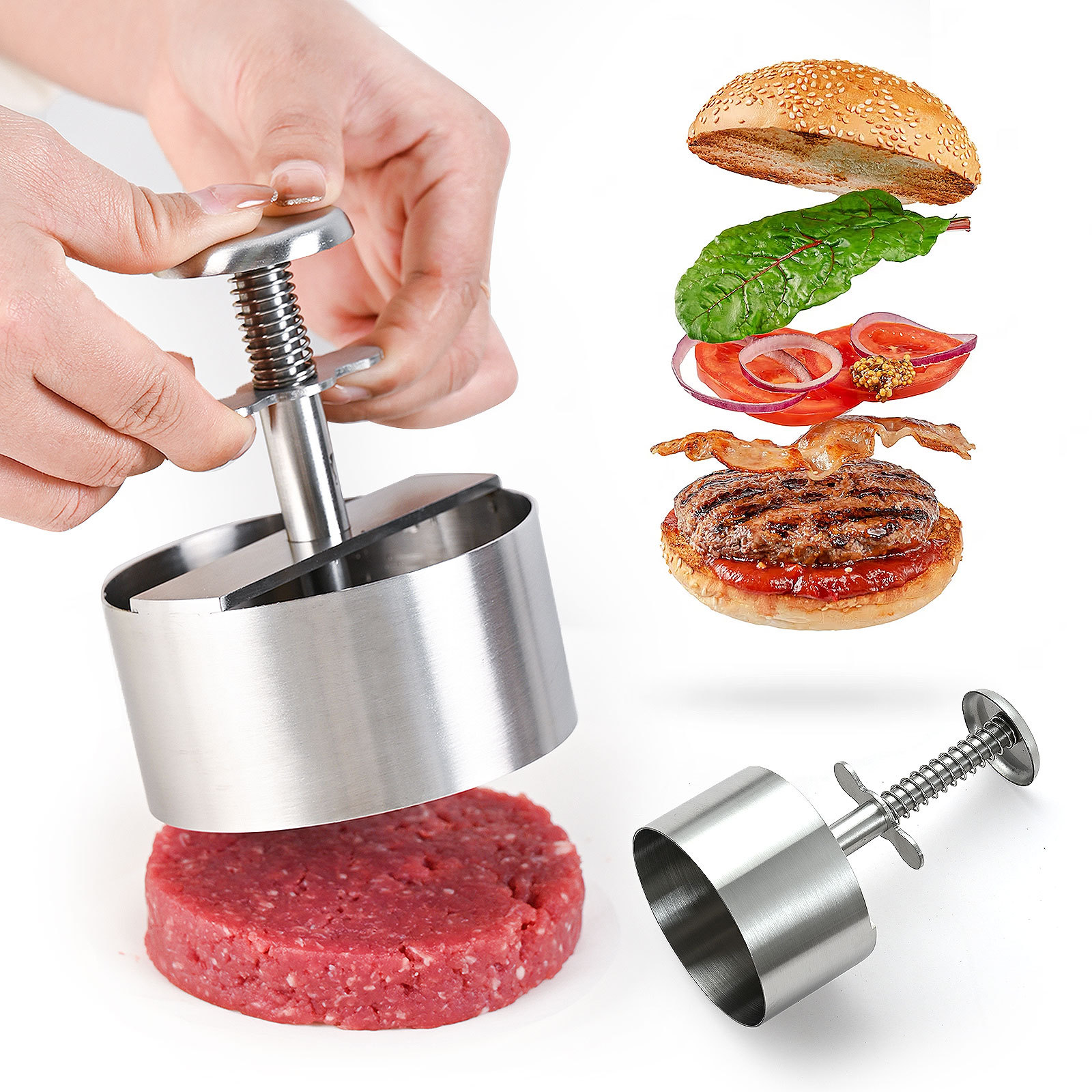 ABS塑料圆形按压式汉堡压肉器家用肉饼压厨房手动不沾压肉器跨境