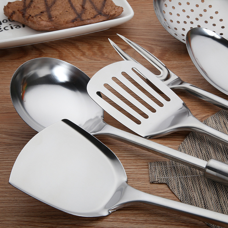 厨房用具不锈钢圆管烹饪锅铲勺空心柄隔热烹饪八件套装地摊炒菜铲