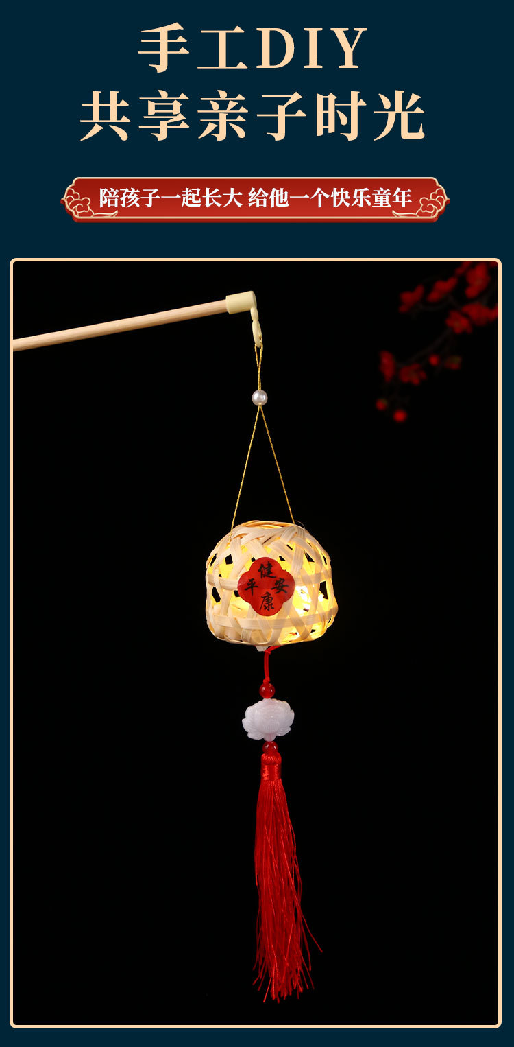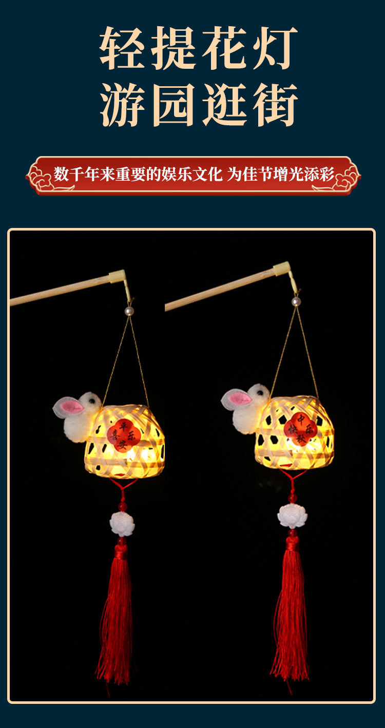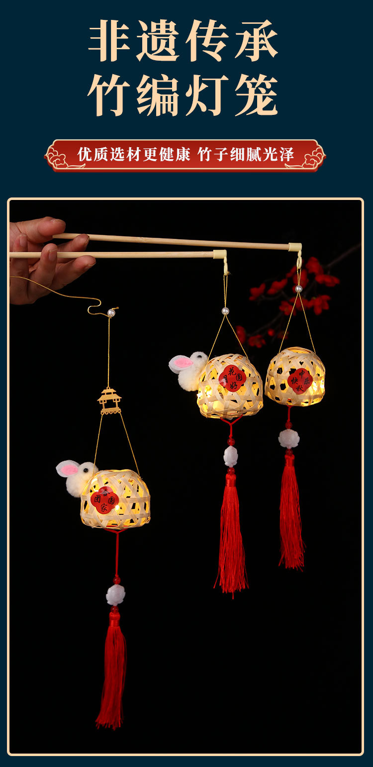 中秋节国庆竹编灯笼手工diy材料包儿童手提发光古风小花灯摆地摊