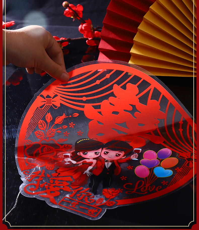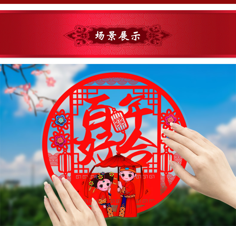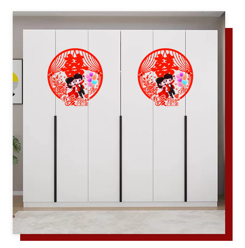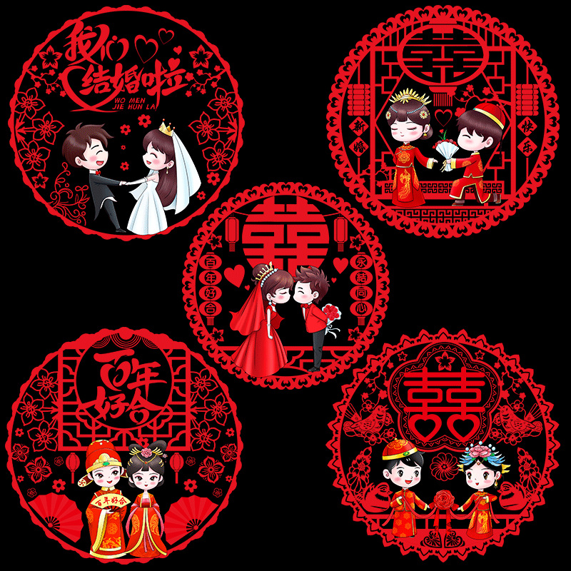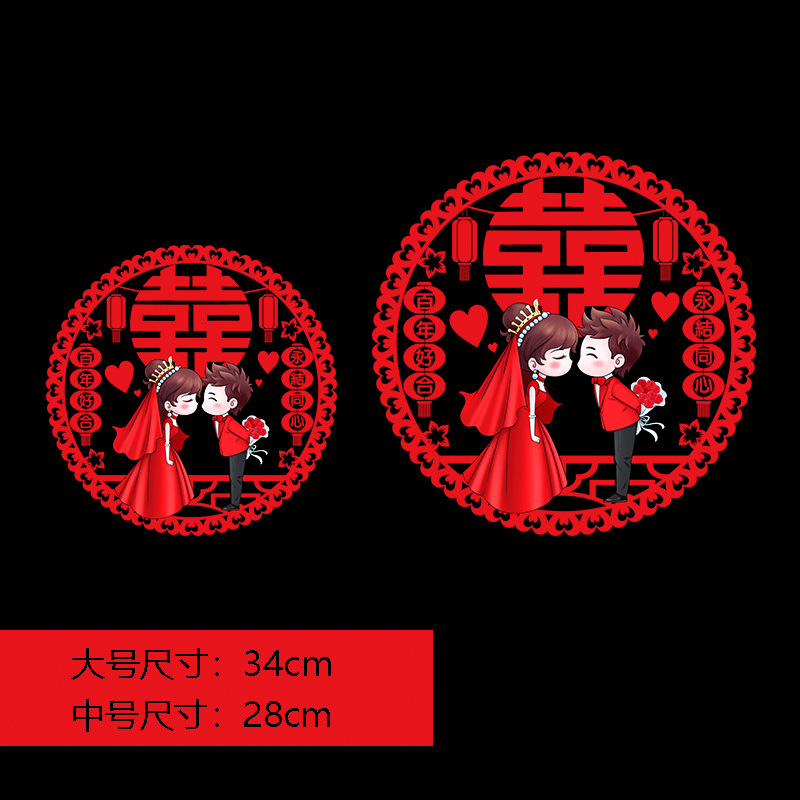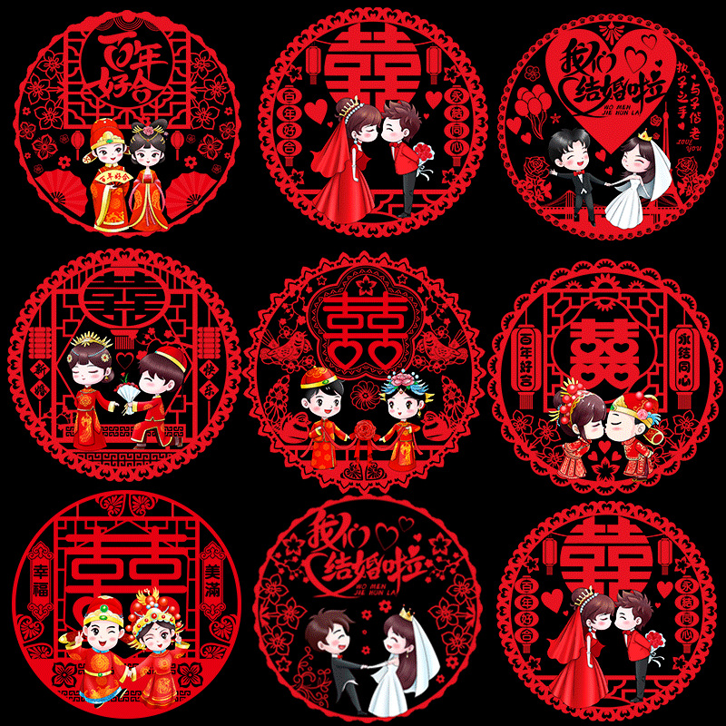结婚窗花贴喜字婚房装饰剪纸静电贴玻璃窗户布置贴纸喜字结婚专用