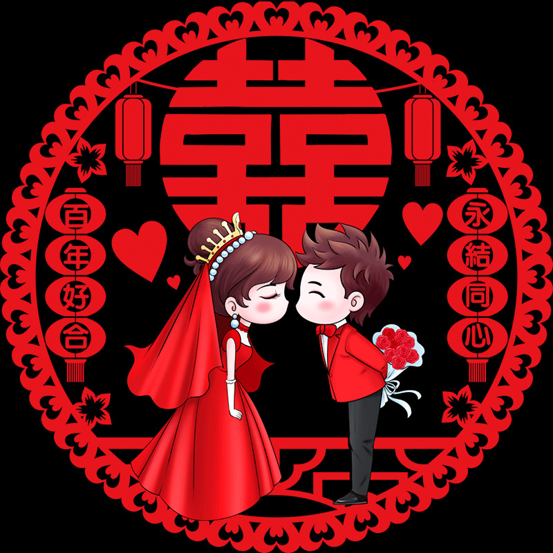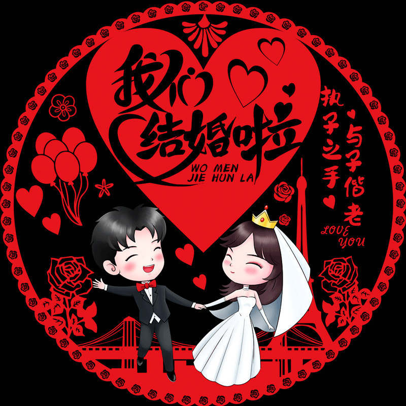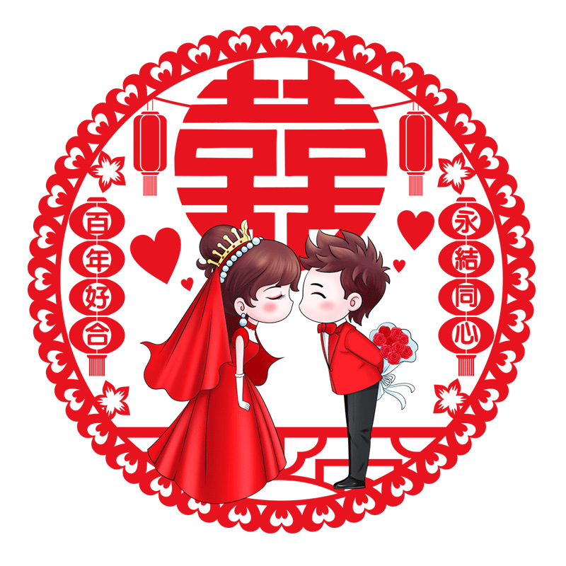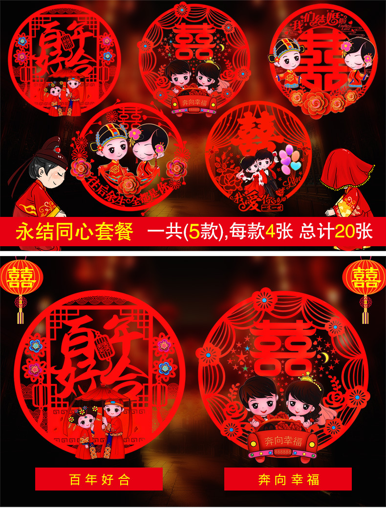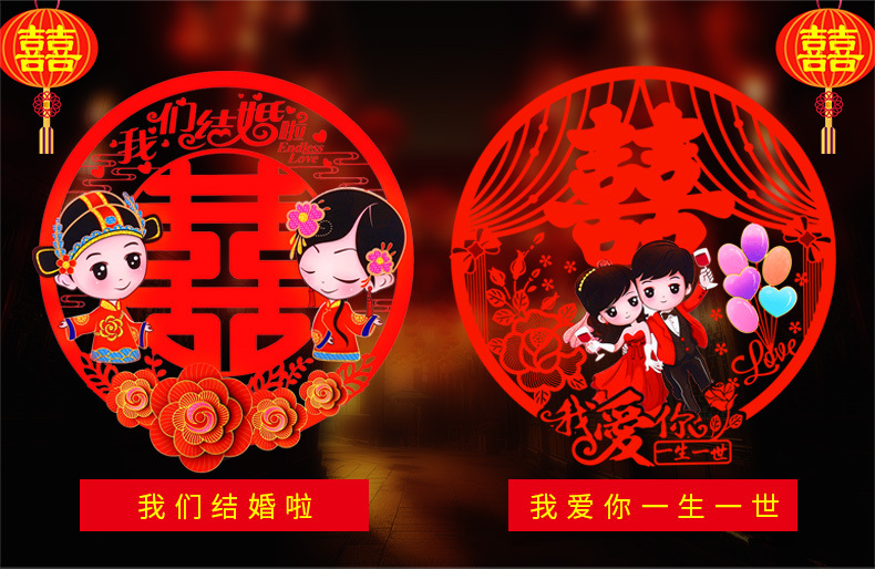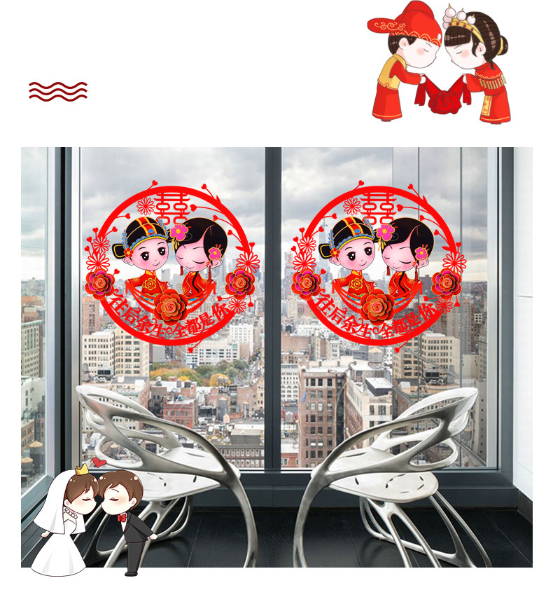 结婚窗花贴喜字婚房装饰剪纸静电贴玻璃窗户布置贴纸喜字结婚专用