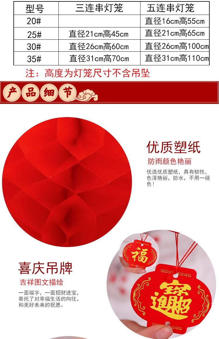 2024新年装饰油酥纸蜂窝小红灯笼挂饰过年商超春节挂件场景布置