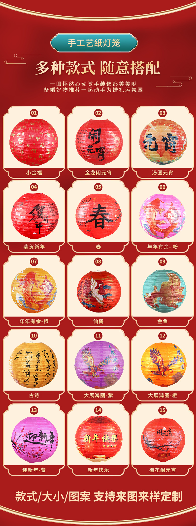2025蛇年福字印刷灯笼现货批发国风中式年会新年布置场景红纸灯笼