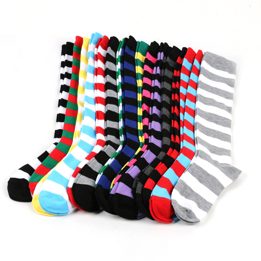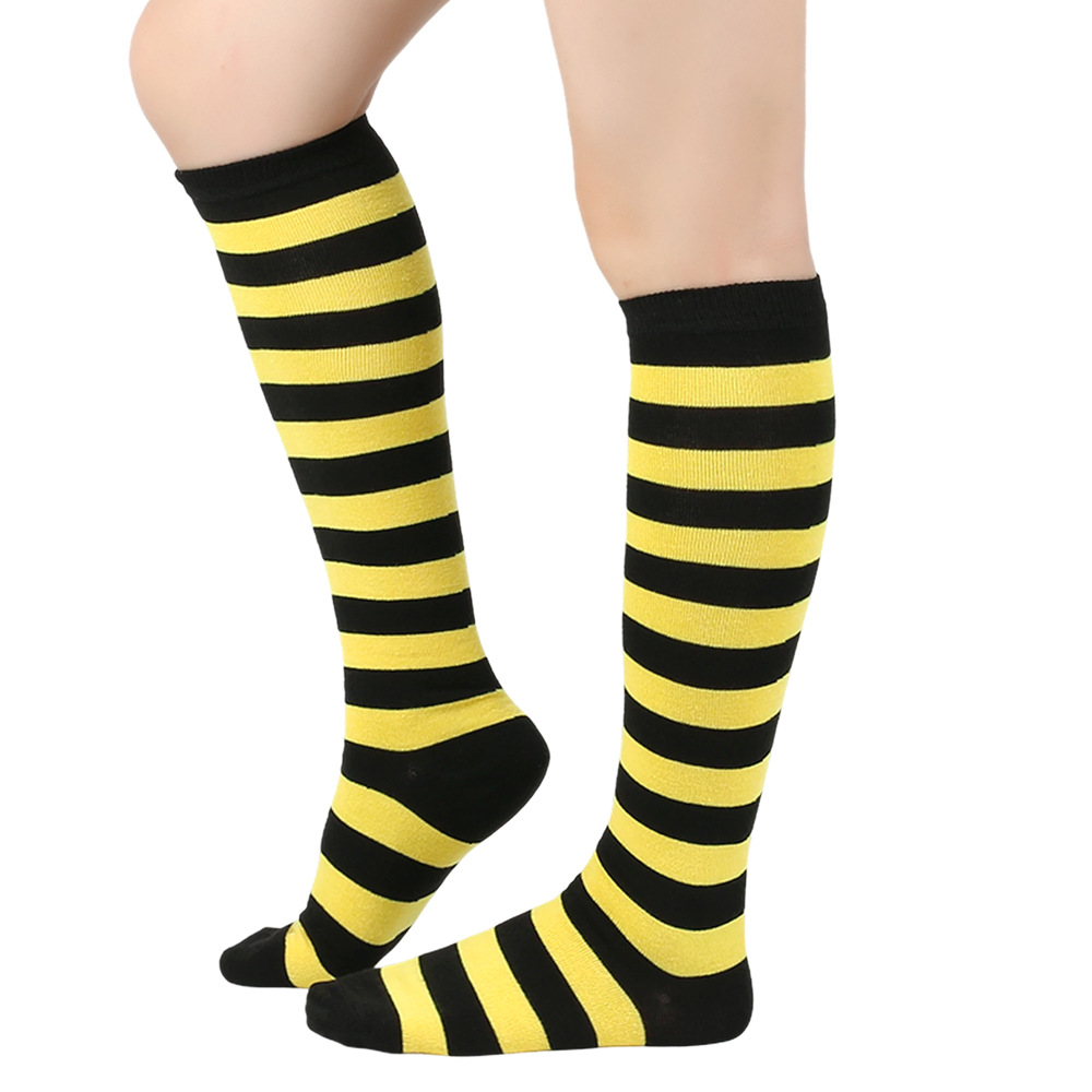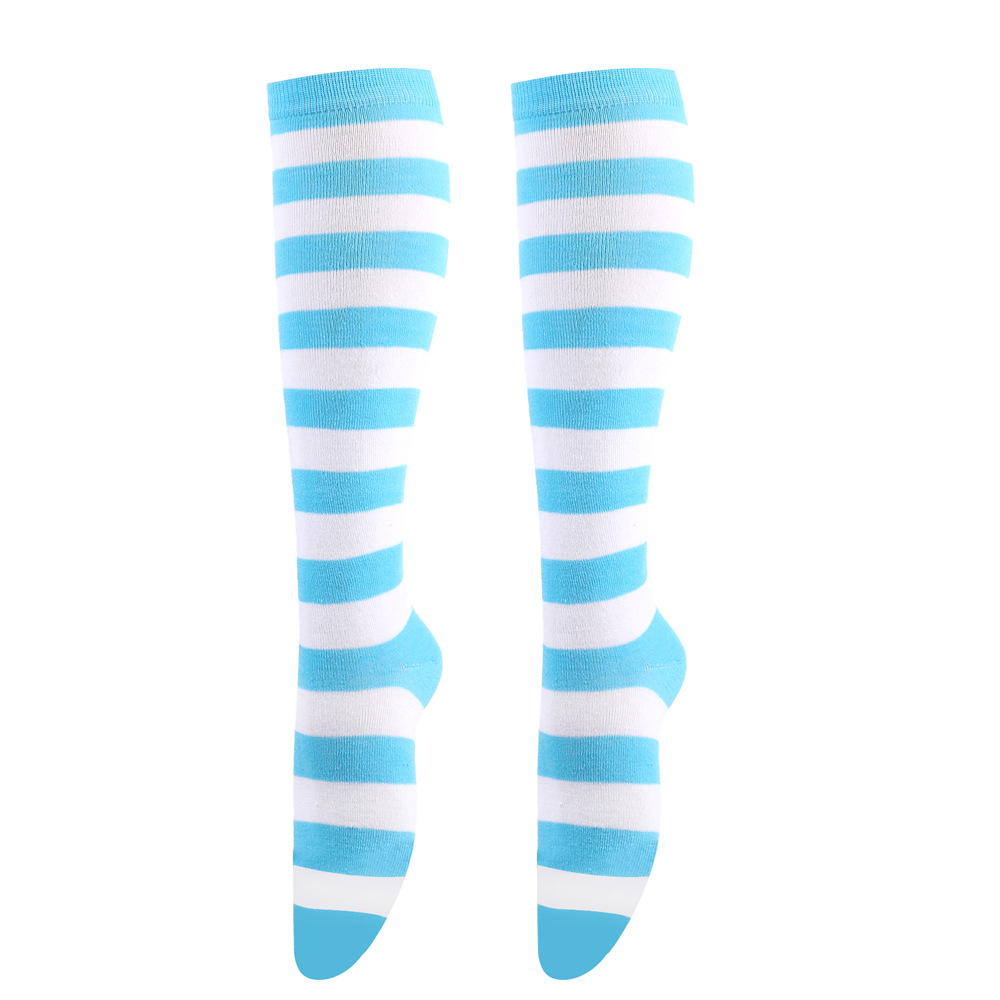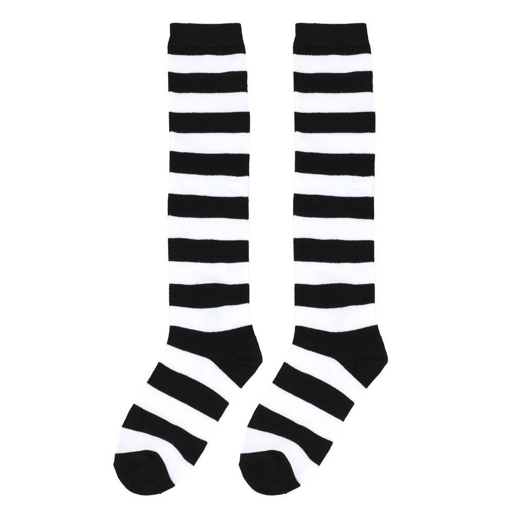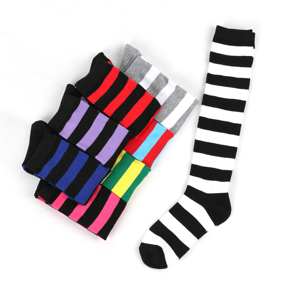 跨境夏款条纹中筒袜女士cos袜及膝袜运动袜欧美表演袜条纹小腿袜