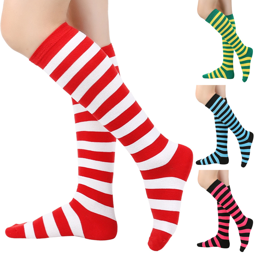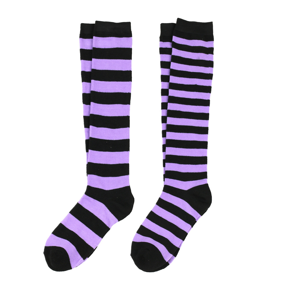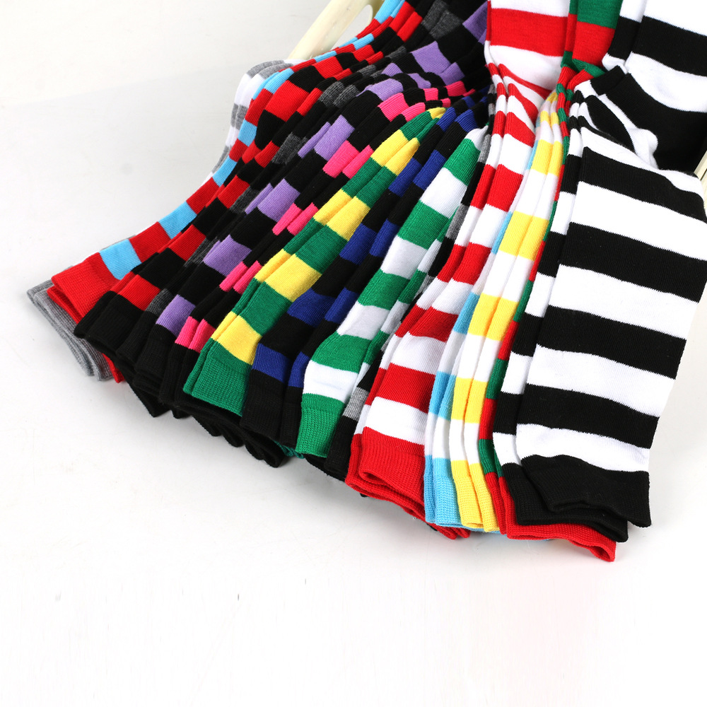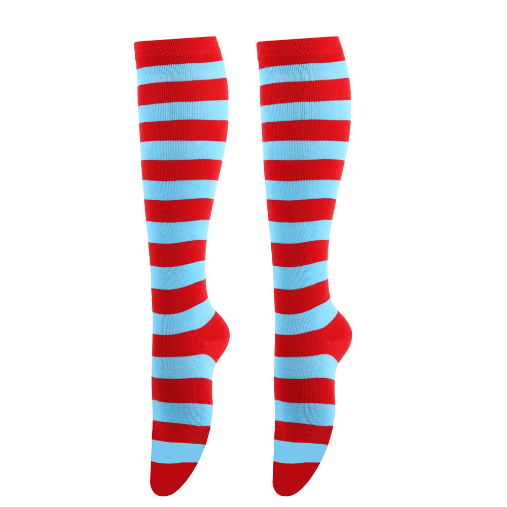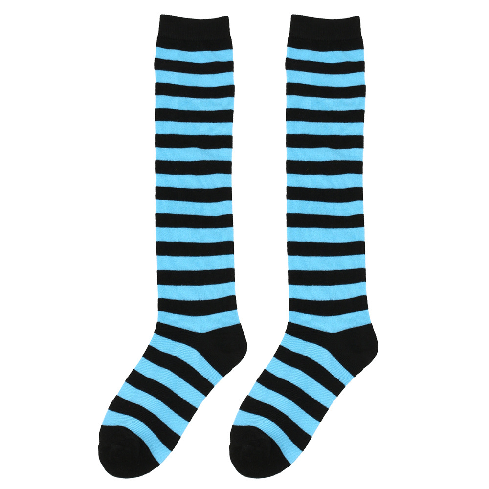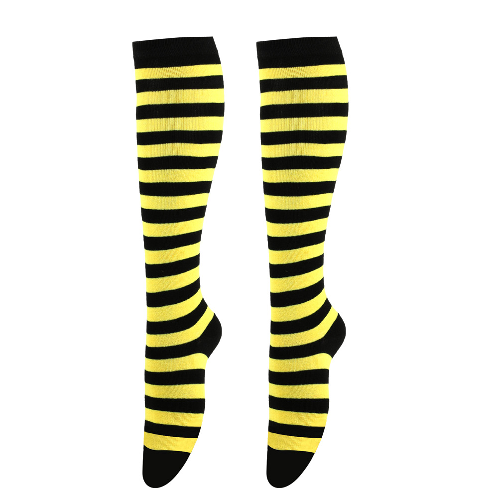 跨境夏款条纹中筒袜女士cos袜及膝袜运动袜欧美表演袜条纹小腿袜