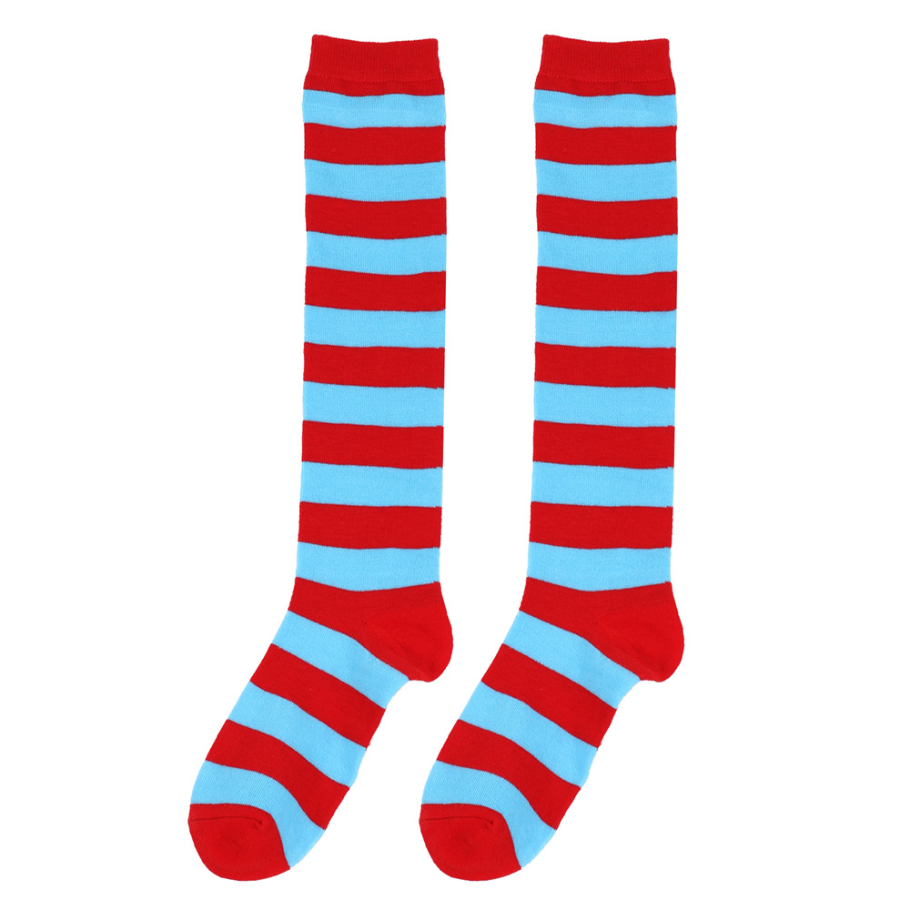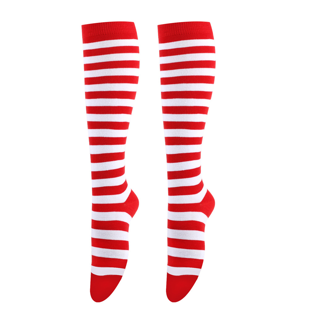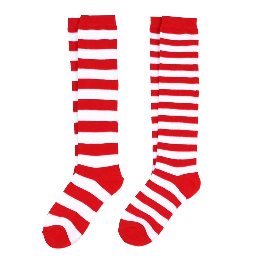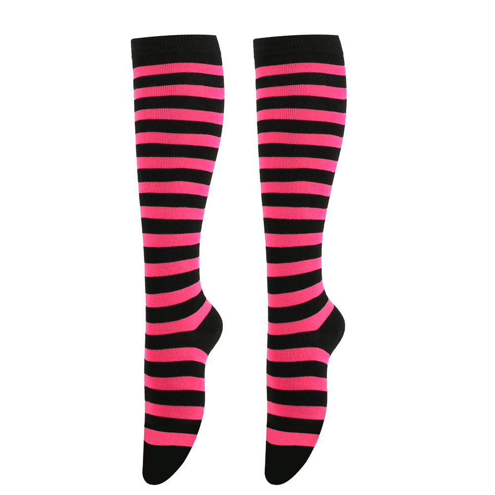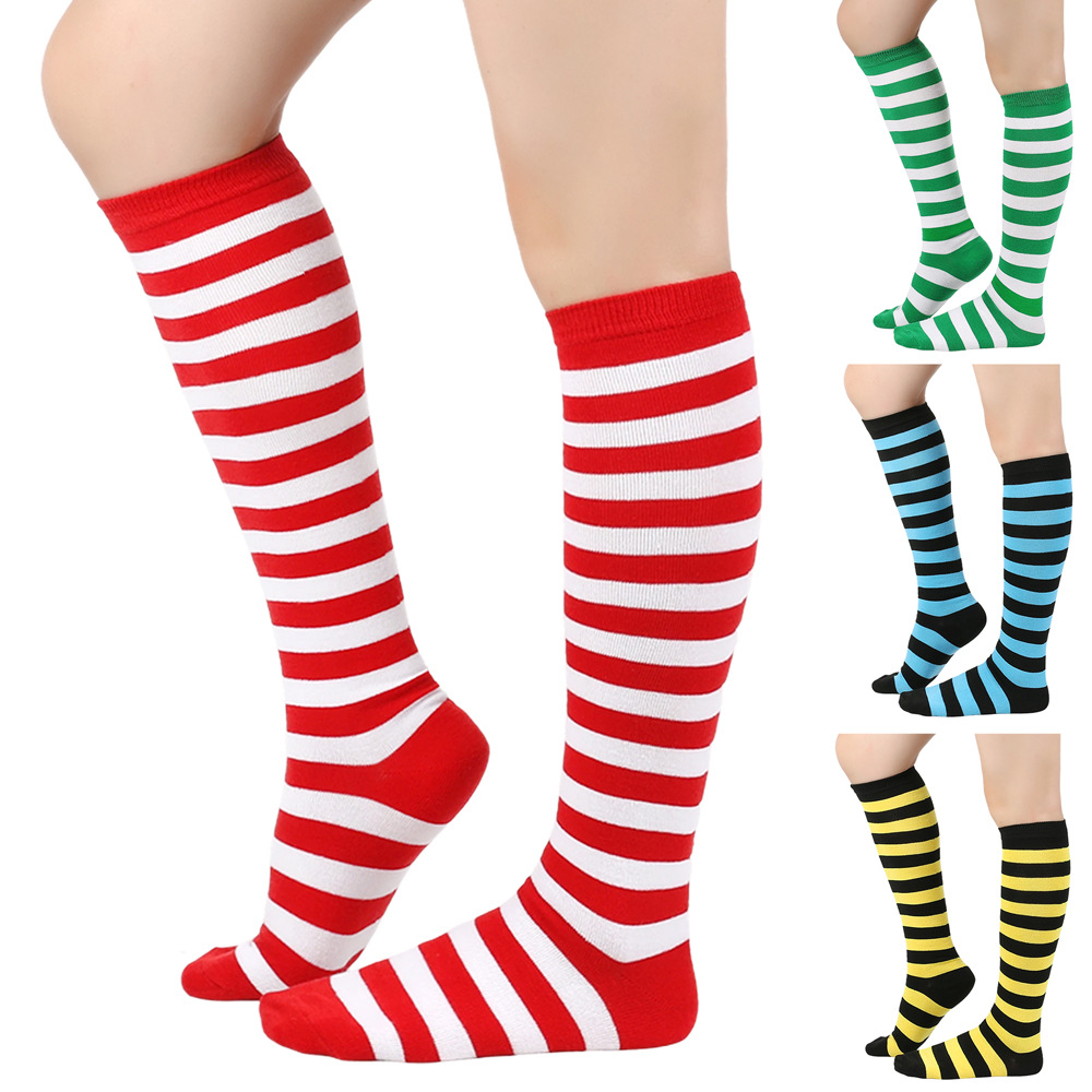 跨境夏款条纹中筒袜女士cos袜及膝袜运动袜欧美表演袜条纹小腿袜