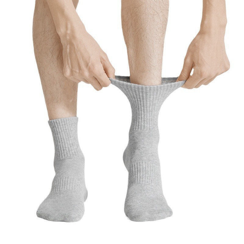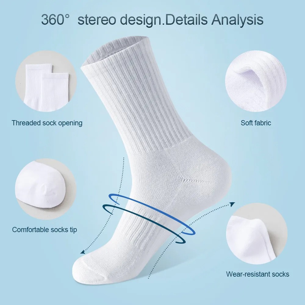 跨境春秋男款白色长筒袜子透气外贸橡筋棉袜批发篮球运动中筒袜