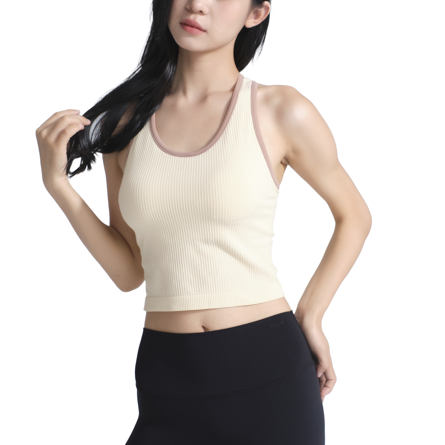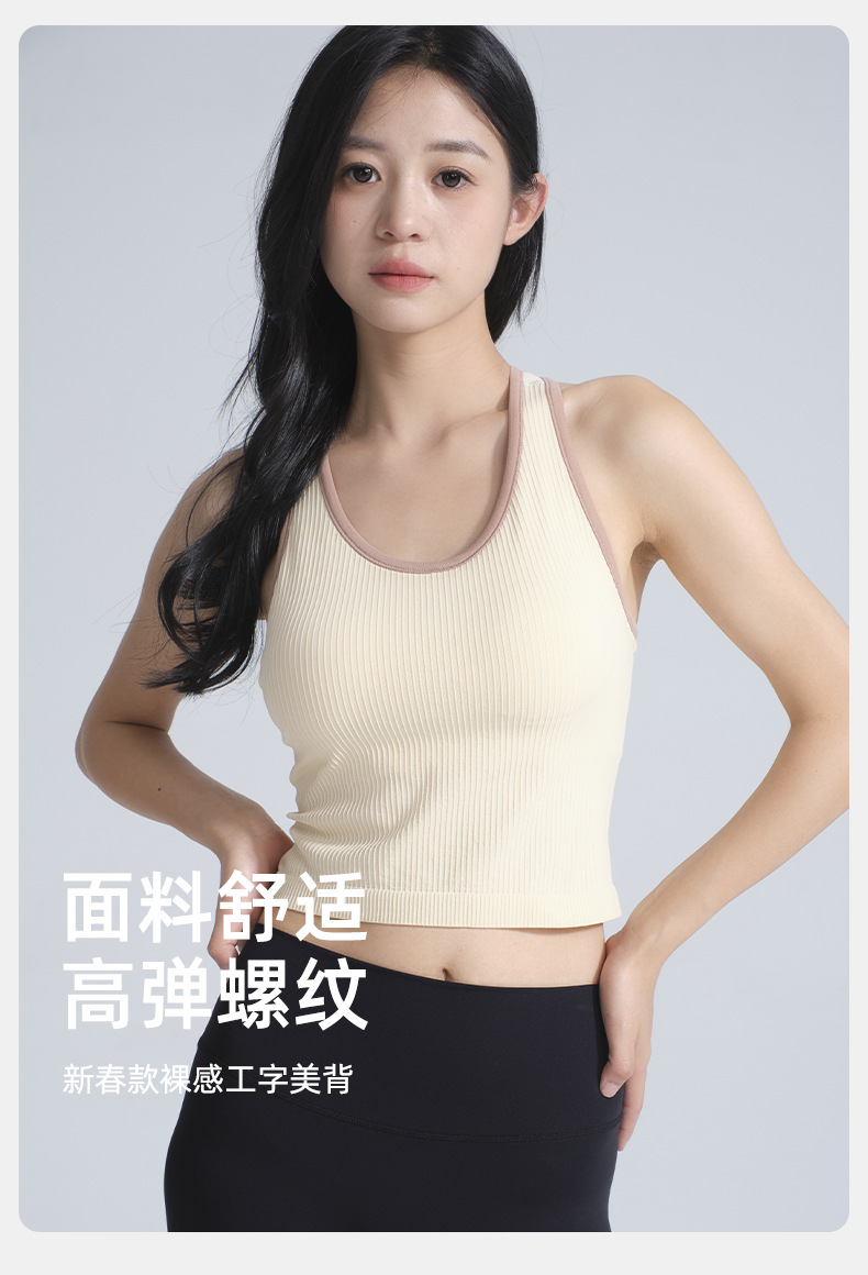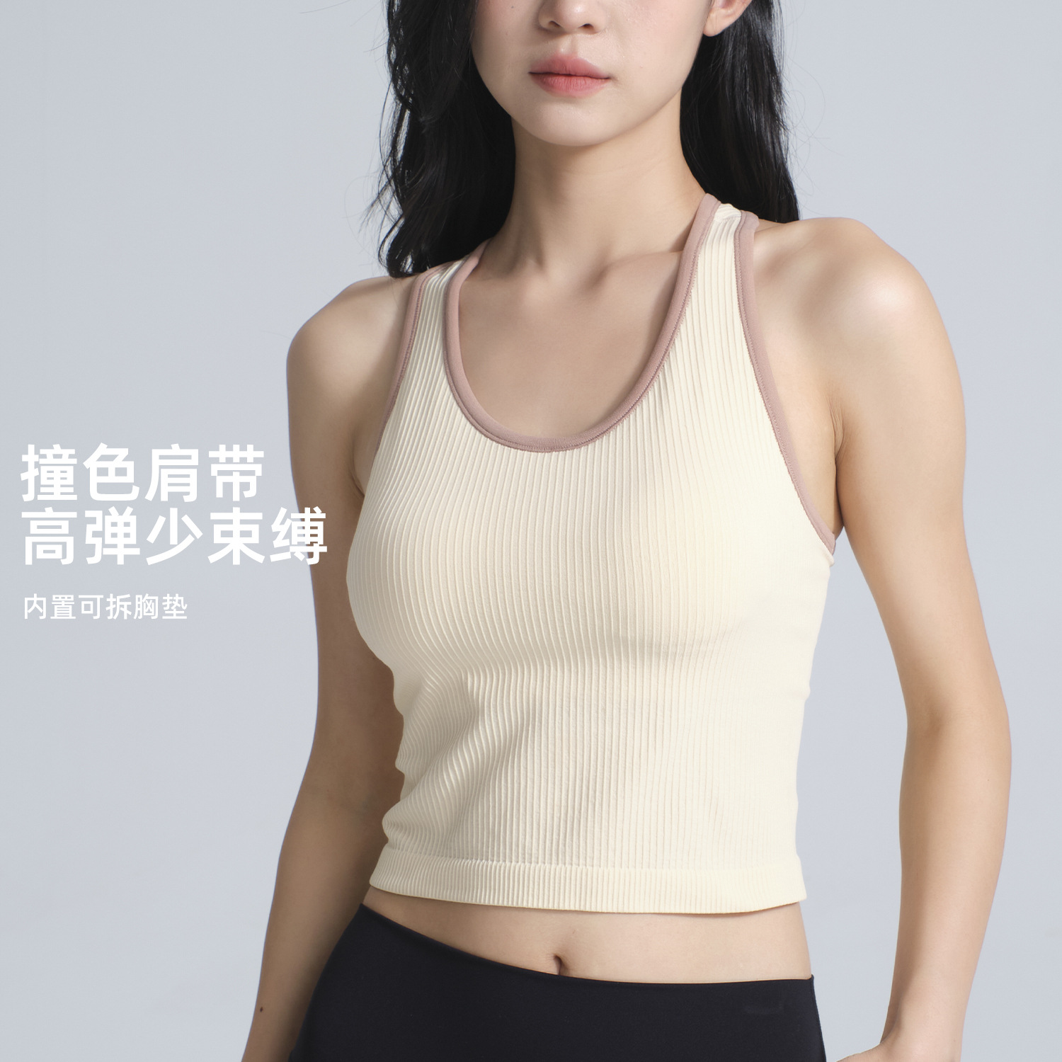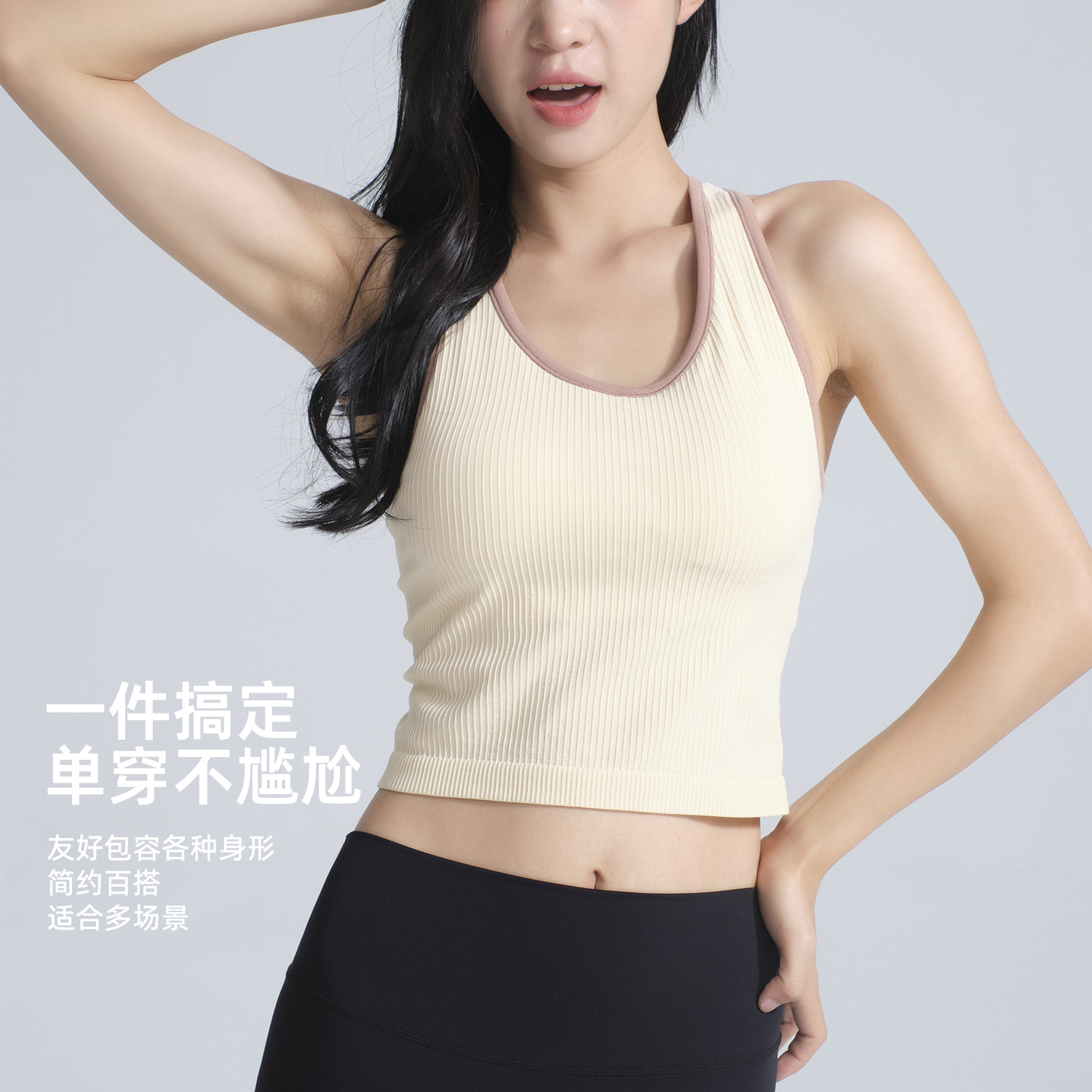lulu春夏含胸垫无缝一体织运动背心女修身显瘦无袖健身瑜伽背心女
