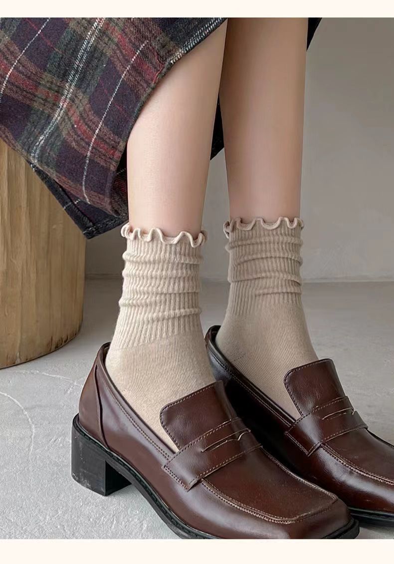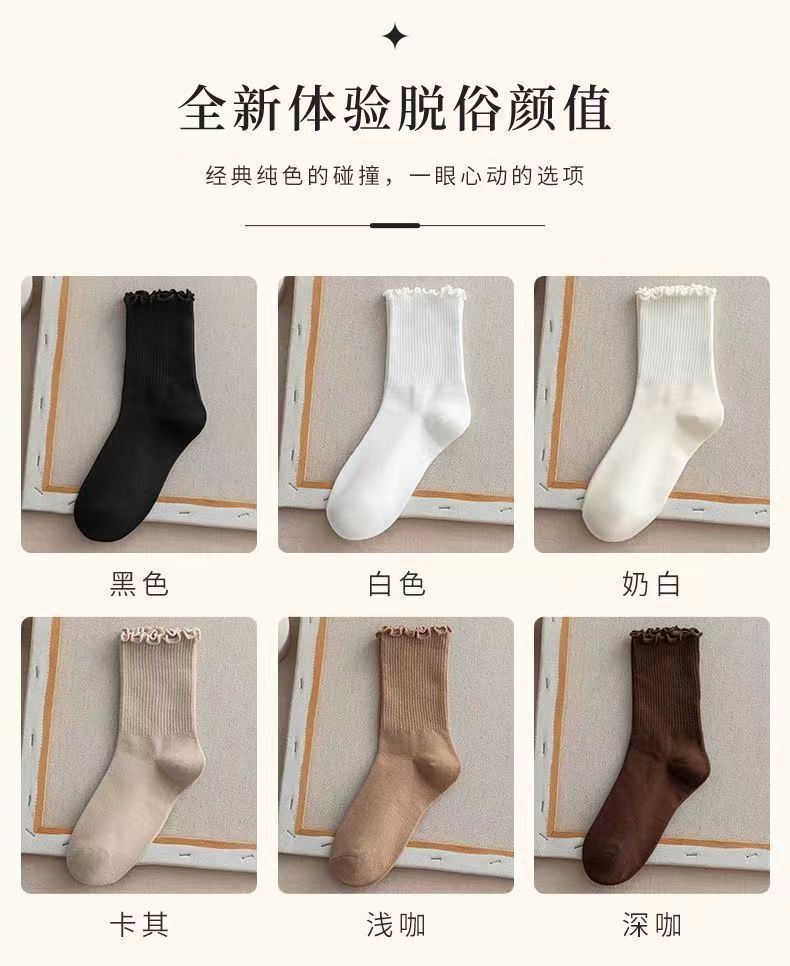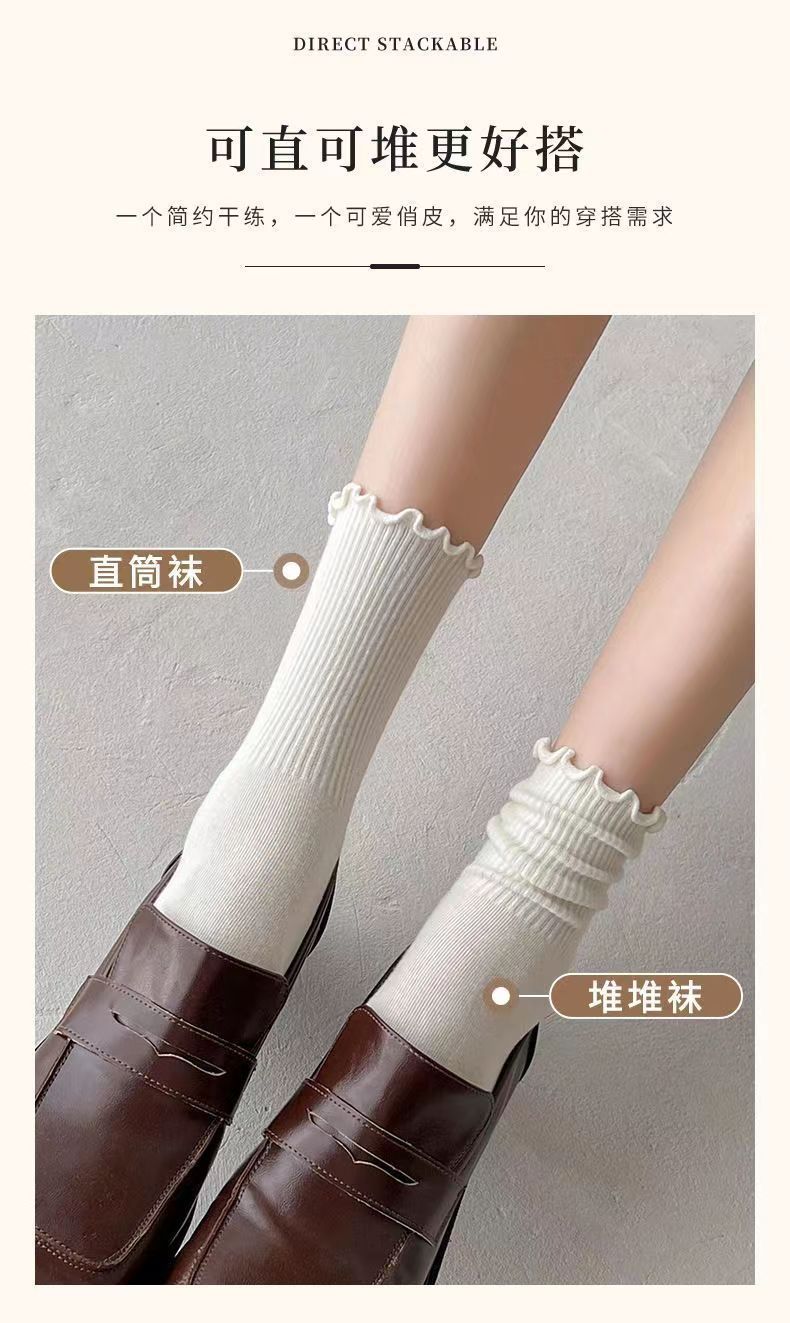 袜子女中筒春秋款性感木耳边花边ins日系百搭堆堆秋冬季jk女袜