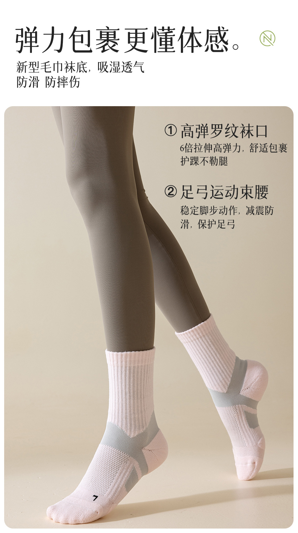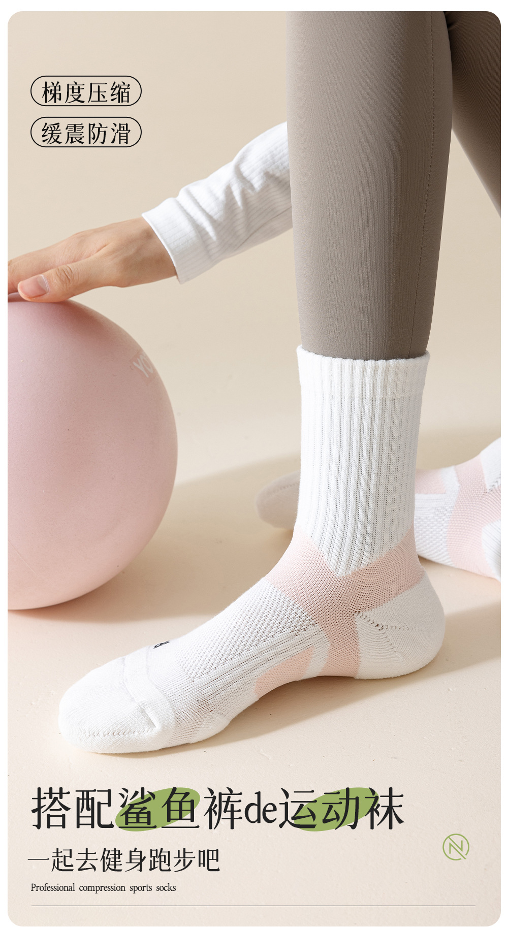 专业跑步运动袜女春秋羽毛球袜跳绳骑行瑜伽夏季中长筒袜配鲨鱼裤