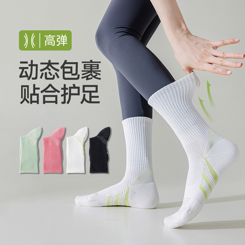 专业羽毛球袜子女夏季薄款棉中筒跑步运动袜夏天毛巾底防滑长袜