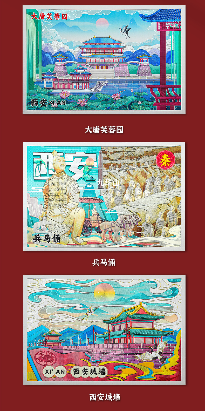 西安炫光明信片原创手绘创意西安钟楼明信片书店邮局盖章纪念品