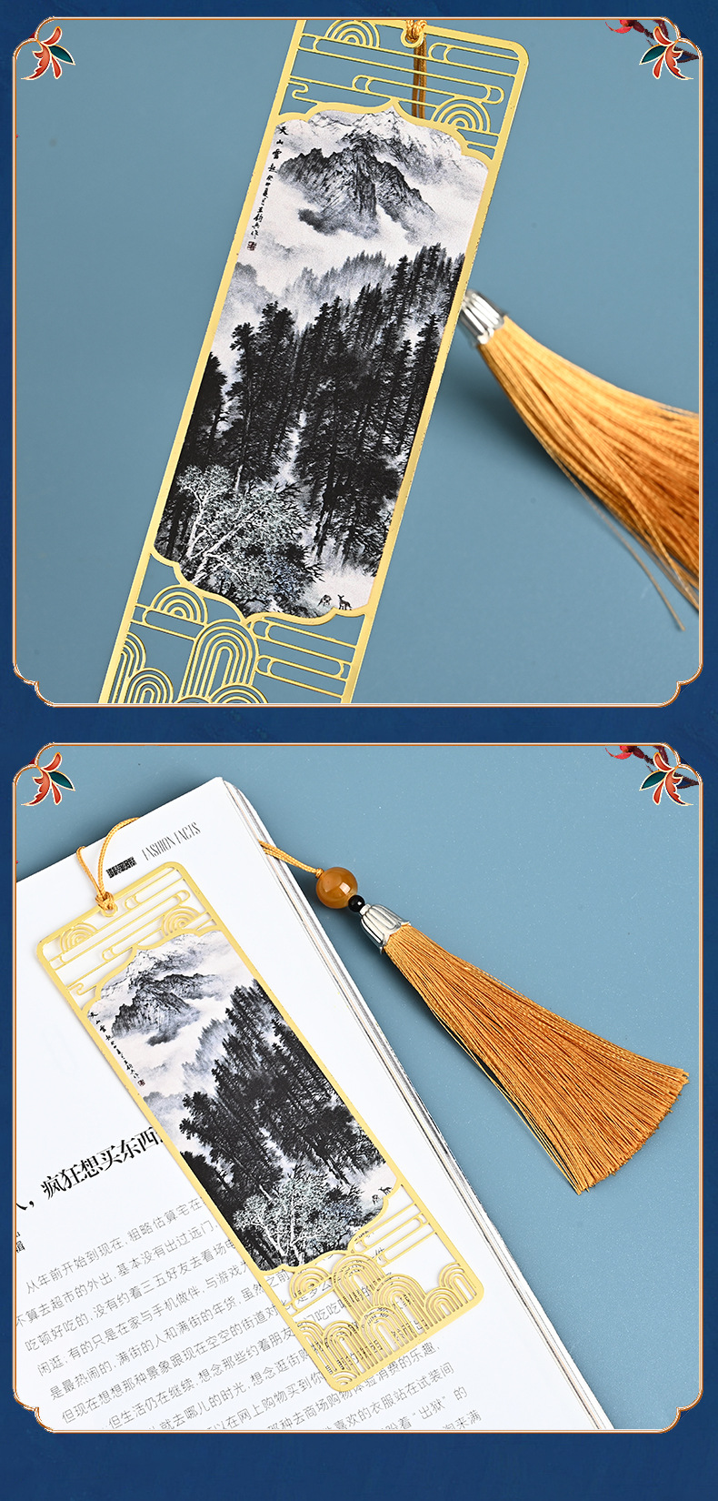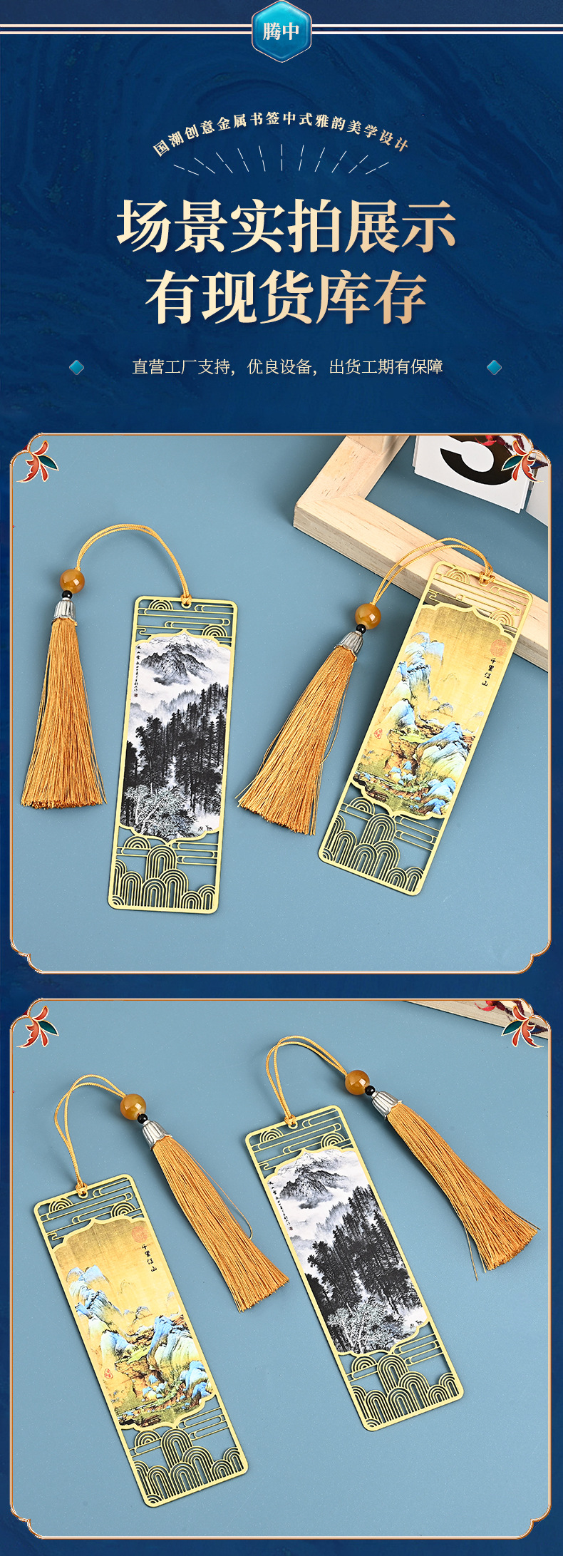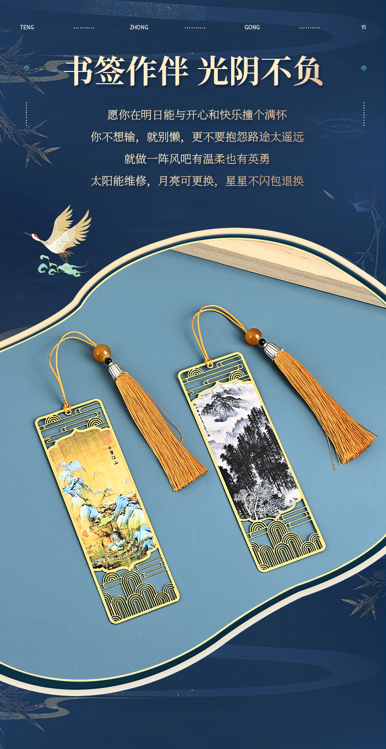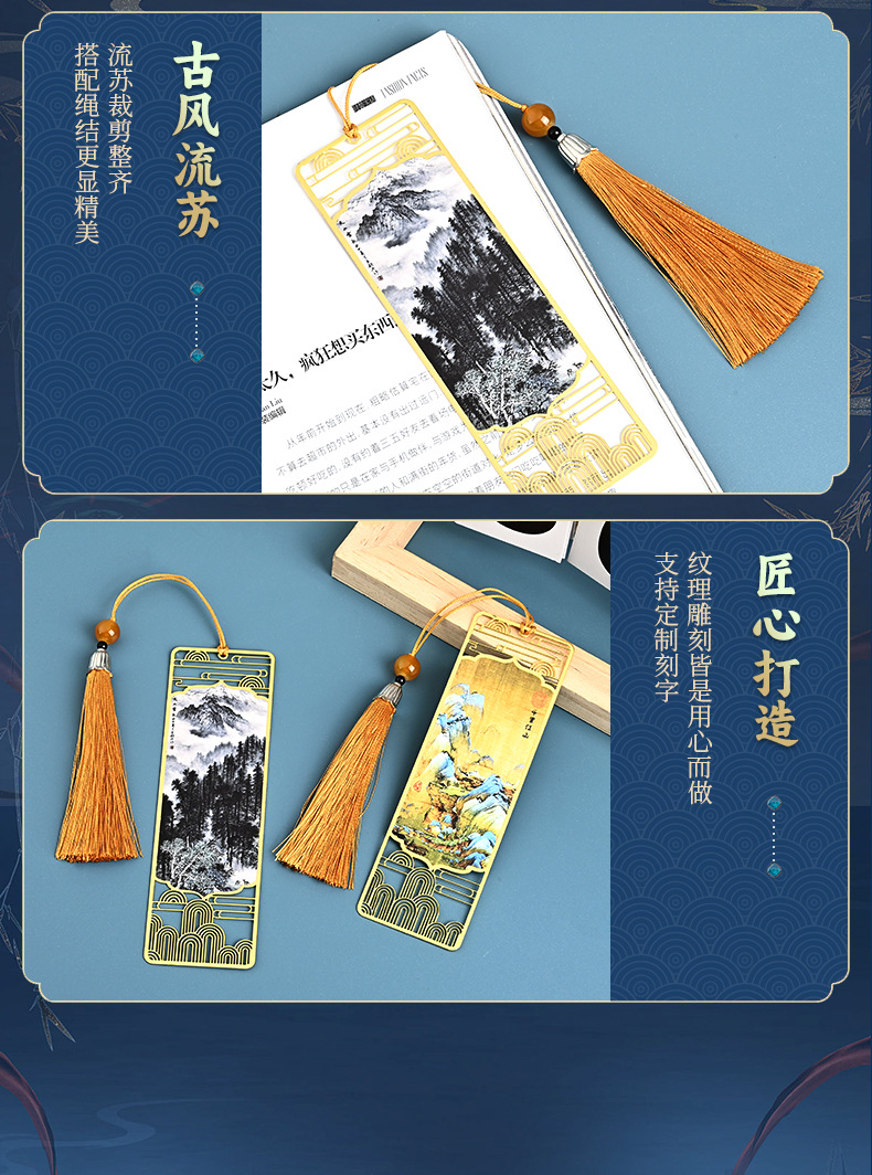 中国风千里江山金属书签批发古典创意精美金属书签高档国风礼品
