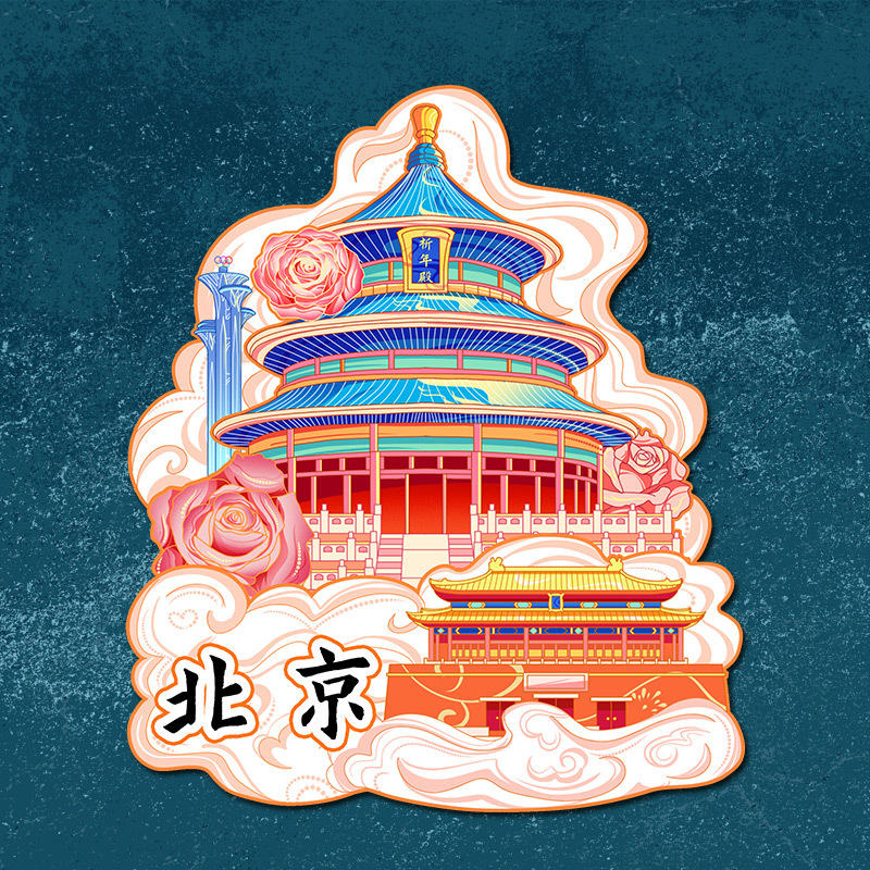 北京天坛文创木质国潮冰箱贴磁吸创意三层立体旅游纪念品城市