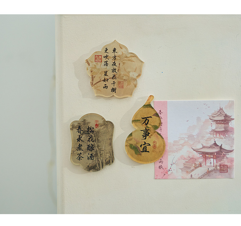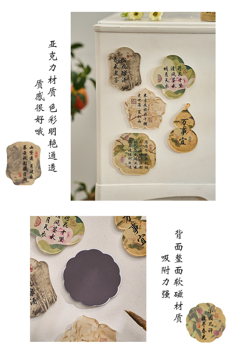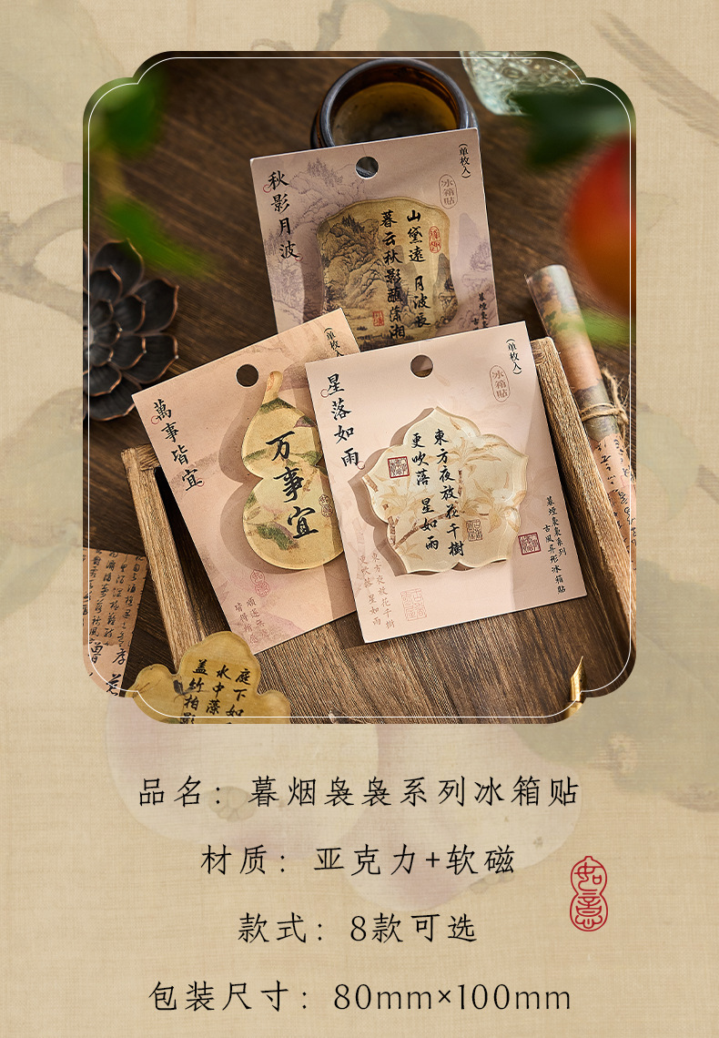早沫亚克力冰箱贴 暮烟袅袅系列 古风书法文字异型磁吸diy冰箱贴