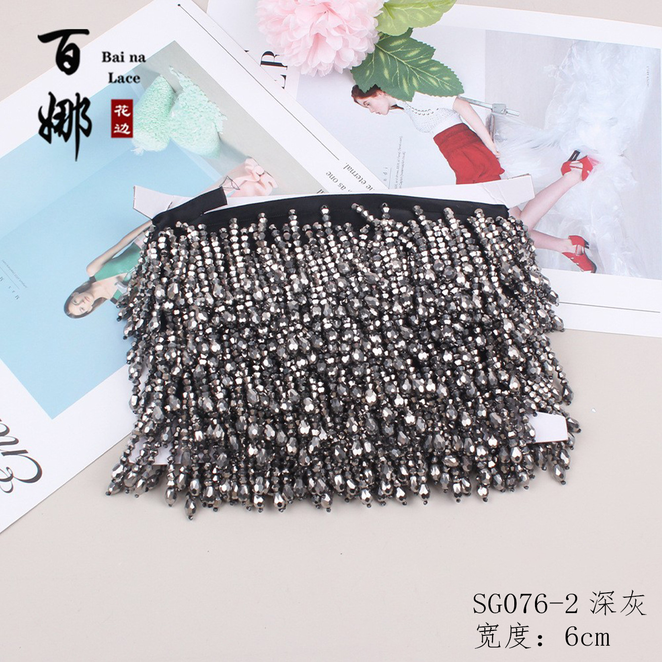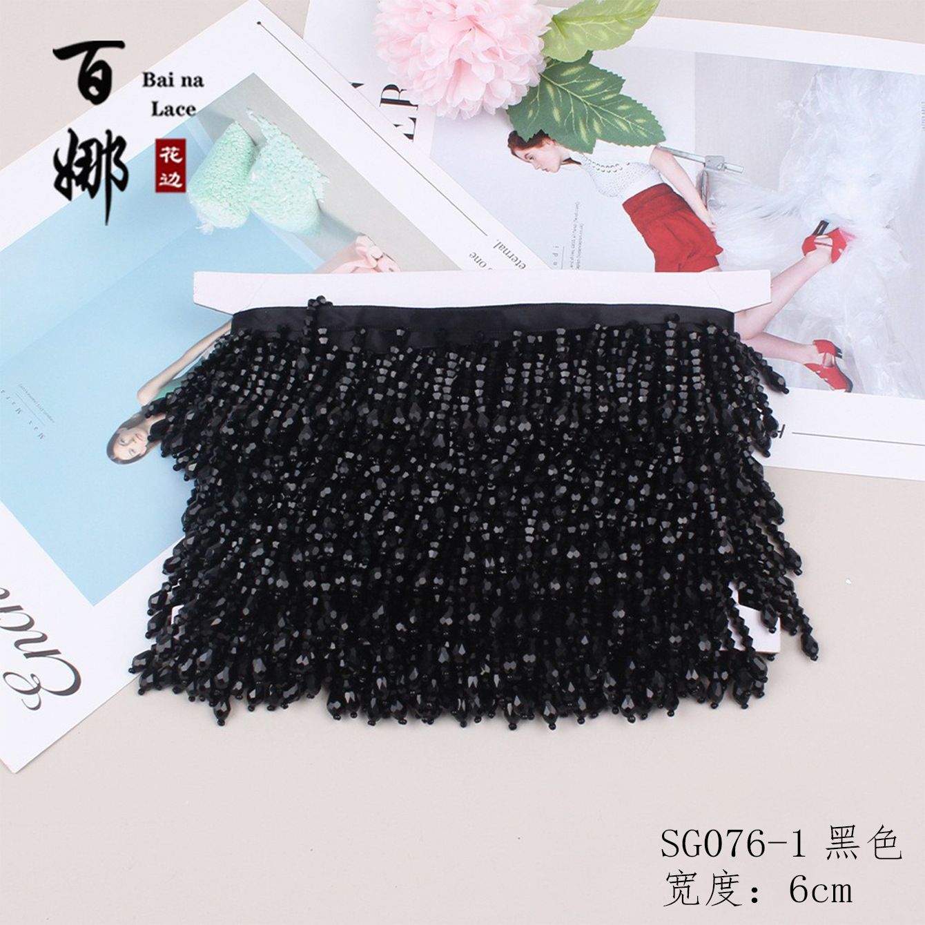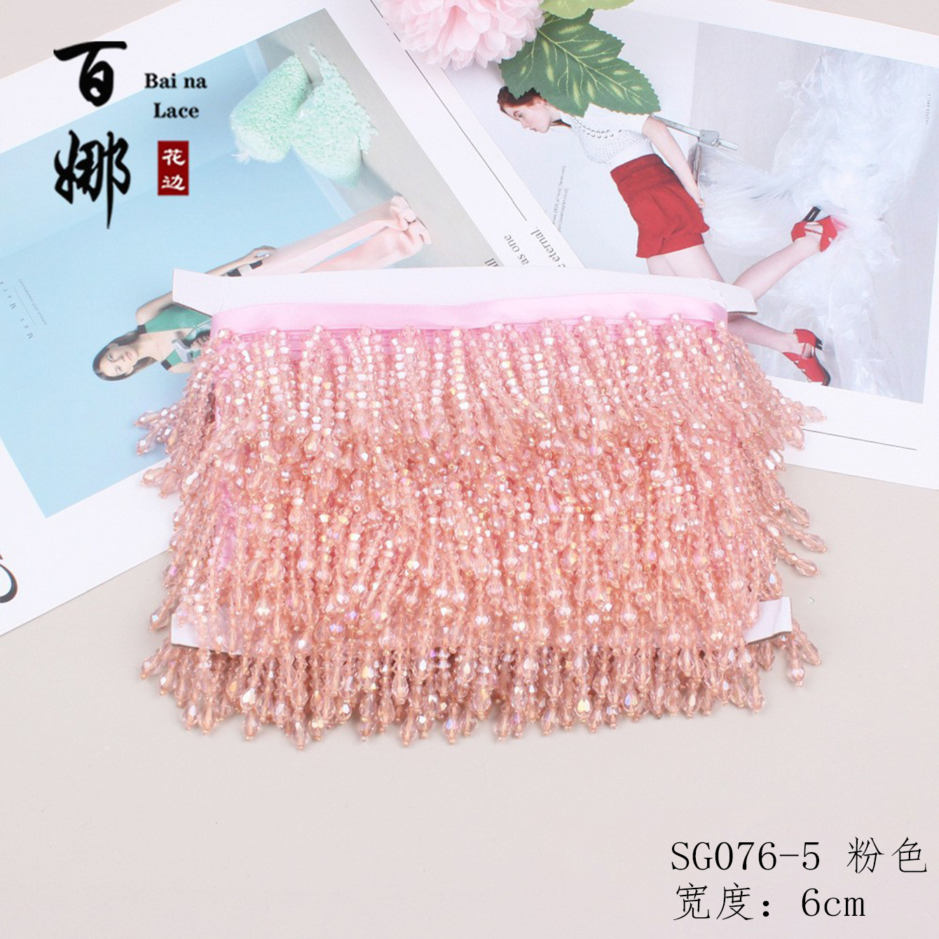 厂家手工水晶材质吊坠 6公分管珠流苏花边DIY服饰灯饰花边辅料