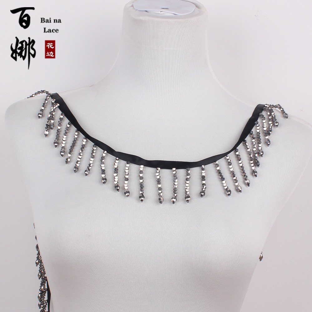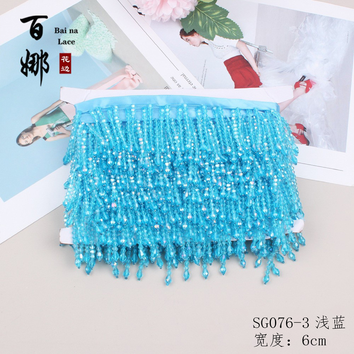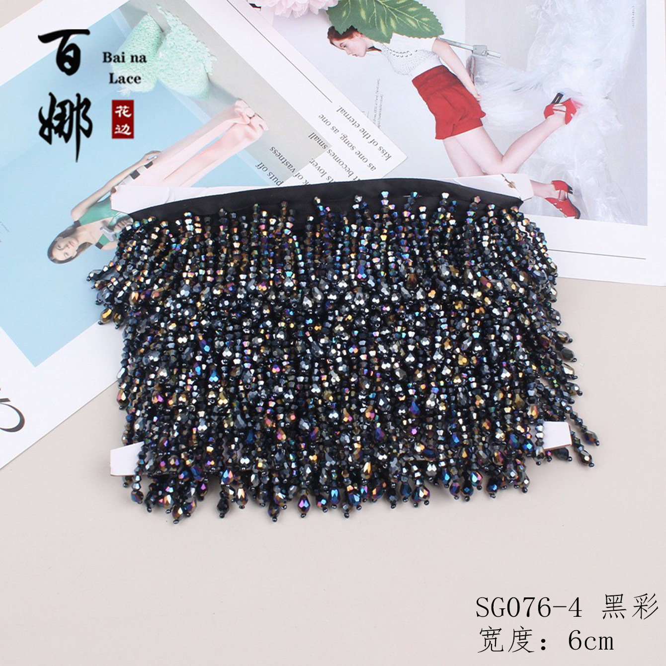 厂家手工水晶材质吊坠 6公分管珠流苏花边DIY服饰灯饰花边辅料